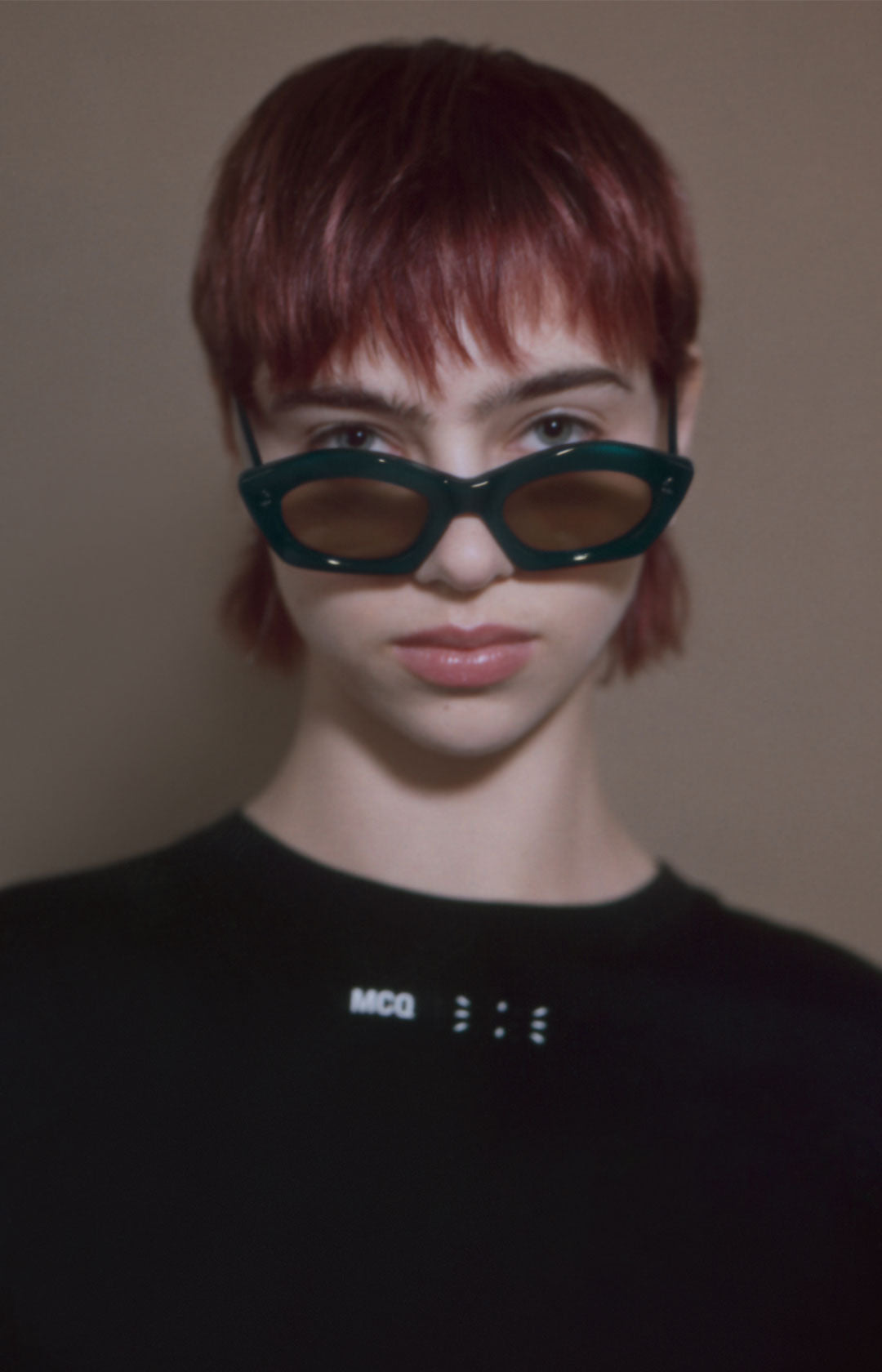 Lo spirito ribelle McQ ispira montature in metallo, arricchite con un doppio piercing e una punteggiatura borchiata. La proposta di occhiali da sole e da vista coniuga design sofisticato e dettagli distintivi trasformando ogni modello in un’autentica dichiarazione di stile. Le costruzioni innovative hanno profili taglienti arricchiti da una gravity bar che amplifica il senso di libertà e leggerezza della collezione. Ogni modello è personalizzato con il logo metallico McQ e con l’iconico dettaglio swallow. Forme trendy e accenti punk definiscono la nuova collezione eyewear del brand.