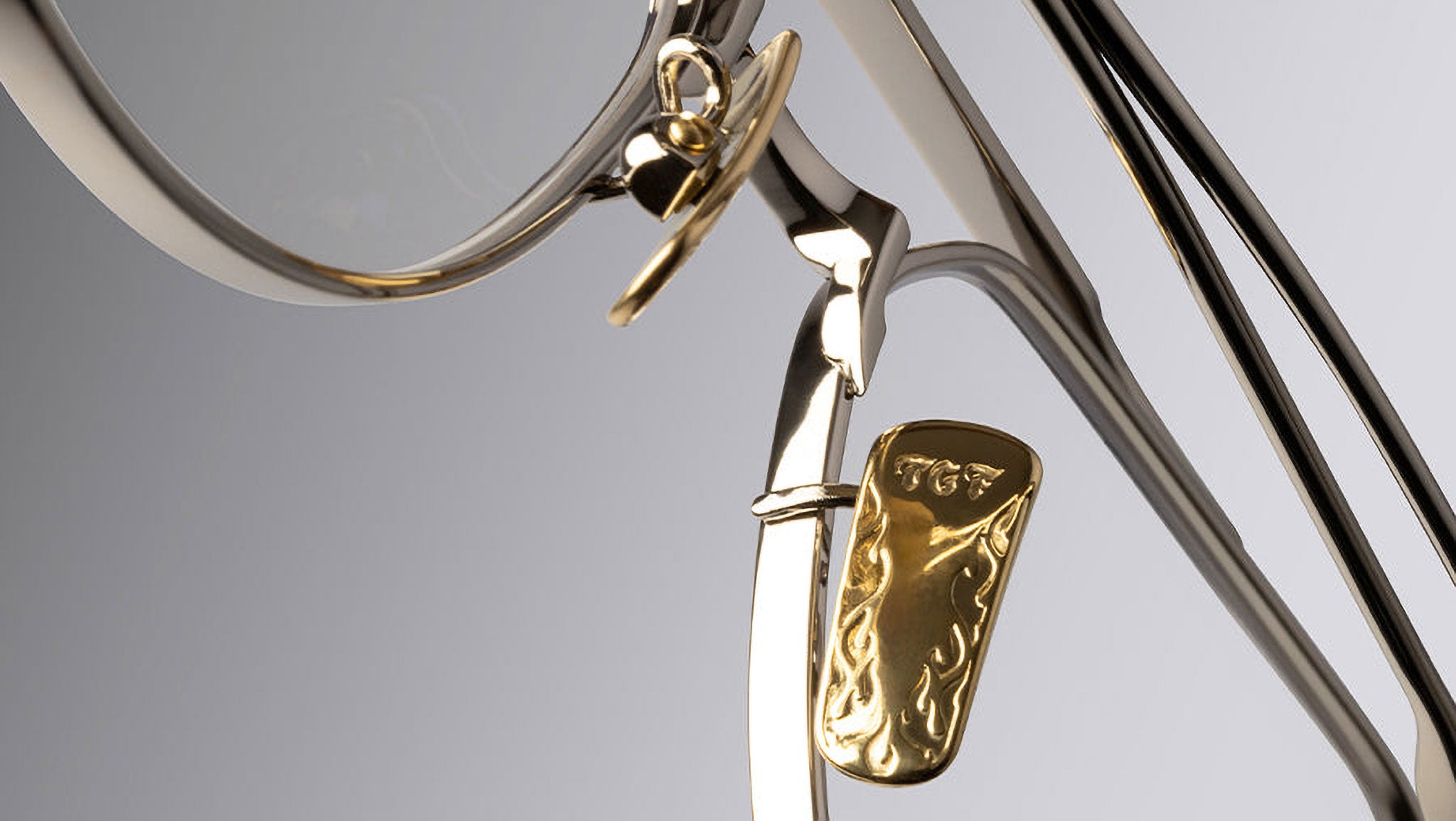 Prodotti in una serie esclusiva di soli 350 pezzi, i Lynott Aviator Opticals della collezione The Great Frog rileggono in chiave decisa la classica silhouette aviator. Realizzata a mano in Giappone in titanio puro, la montatura nasce dalla collaborazione con il celebre gioielliere gotico The Great Frog e presenta dettagli raffinati come il motivo Bones Link inciso sul doppio ponte nasale e integrato con precisione sulle aste. I terminali bombati in titanio assicurano equilibrio e una finitura elegante, mentre i naselli regolabili garantiscono una calzata su misura. Il logo inciso all’interno delle aste testimonia la cura artigianale e l’identità unica di questo pezzo in edizione limitata.