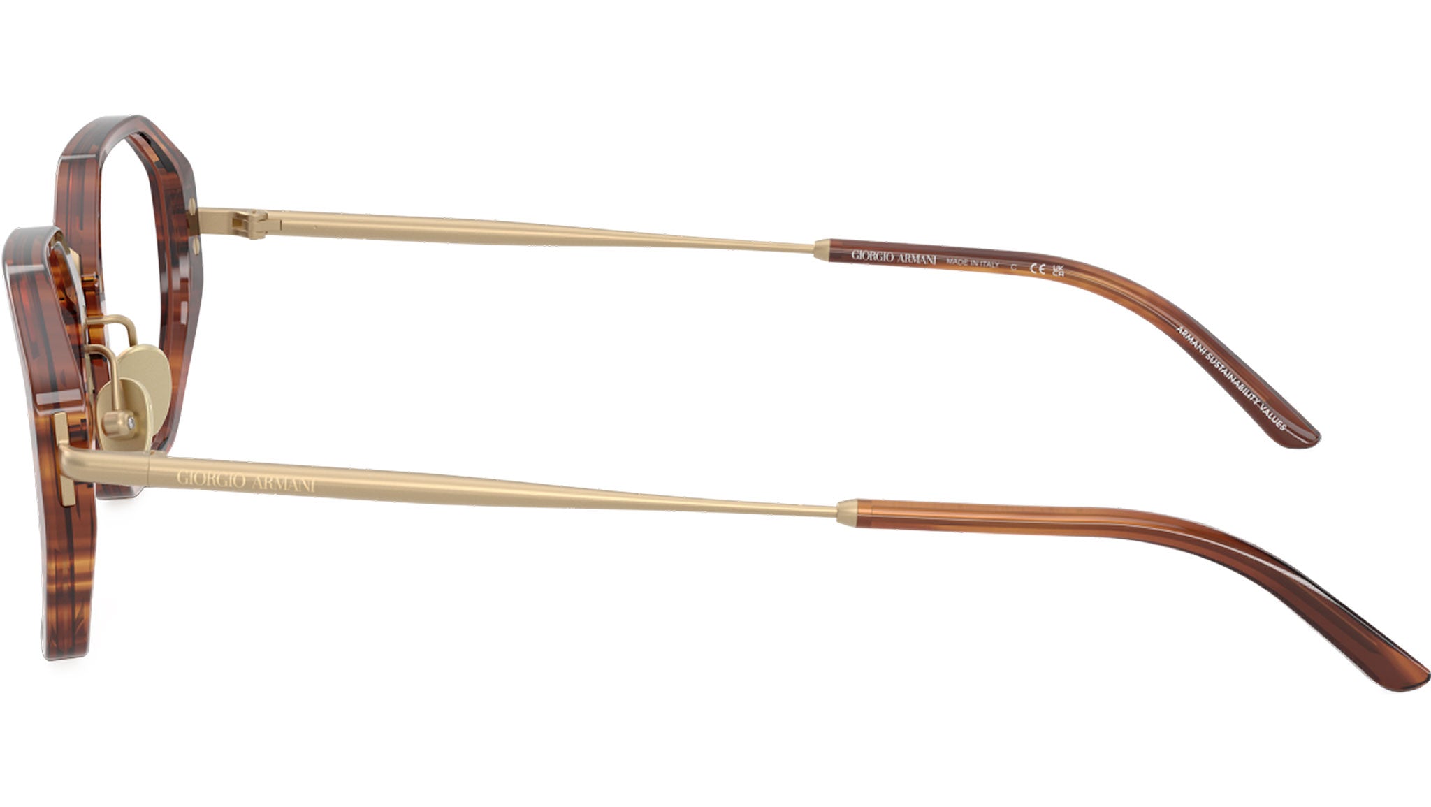 Occhiali da vista Giorgio Armani AR 7282 6162 con montatura geometrica in acetato marrone striato e lenti demo. Naselli regolabili. Linea: Visionary Luxury. Codice modello: 0AR7282. Codice colore: 6162. Rivenditore autorizzato Giorgio Armani online. Gli occhiali vengono consegnati con custodia e accessori originali e sono coperti dalla garanzia ufficiale di 12 mesi del produttore.
