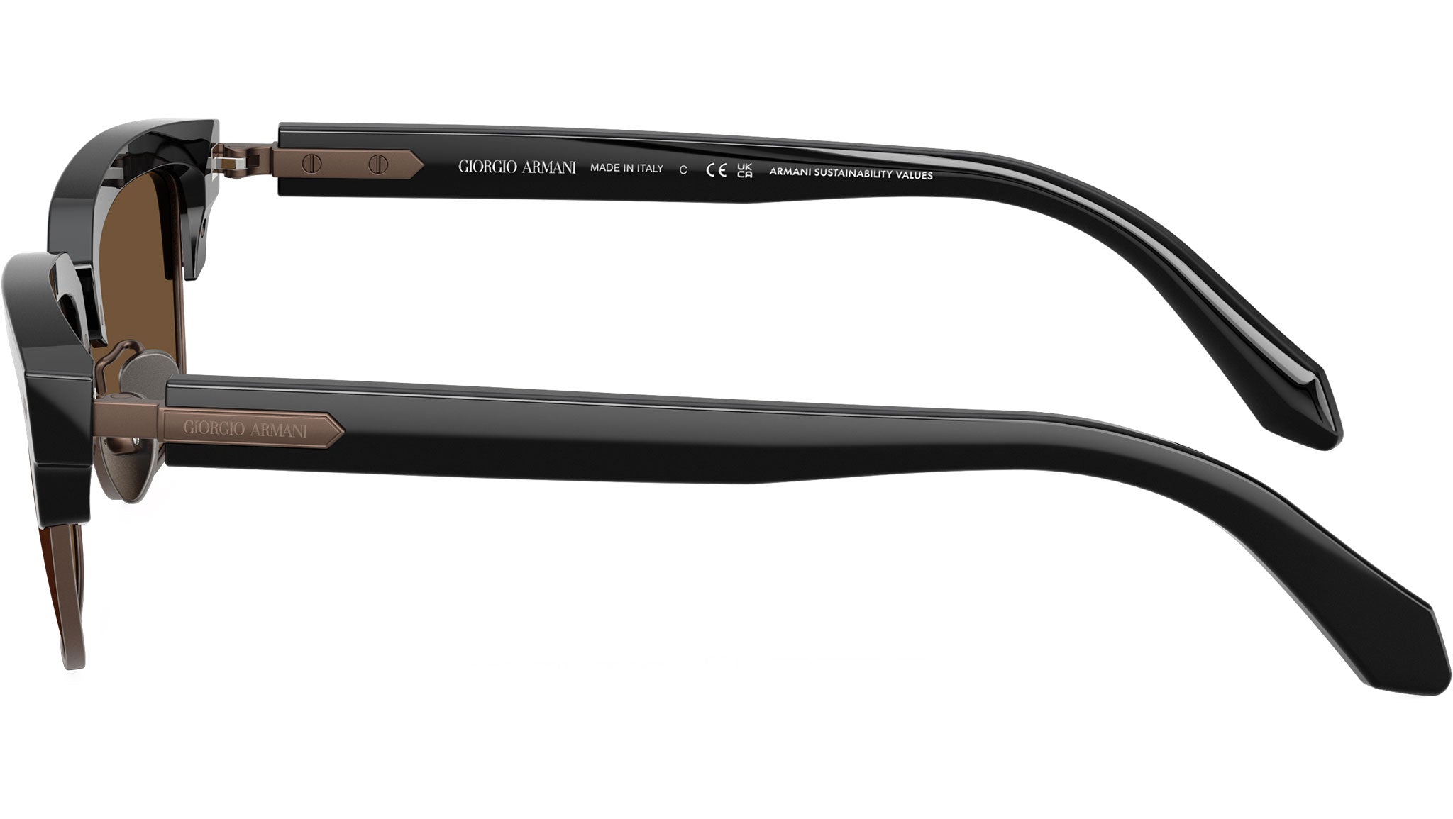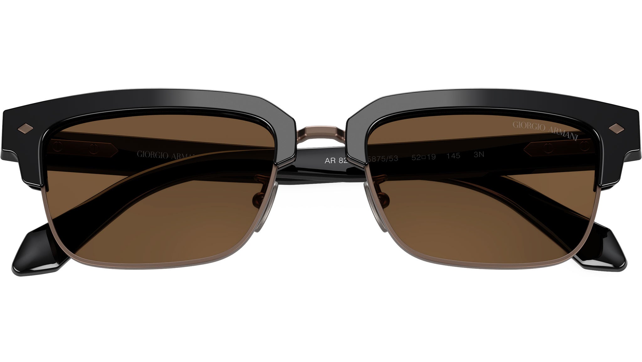 Occhiali da sole Giorgio Armani AR 8243 587553 con montatura rettangolare in acetato nero e lenti in cristallo color marrone scuro. Naselli regolabili. Linea: Visionary Luxury. Codice modello: 0AR8243. Codice colore: 587553. Rivenditore autorizzato Giorgio Armani online. Gli occhiali vengono consegnati con custodia e accessori originali e sono coperti dalla garanzia ufficiale di 12 mesi del produttore.