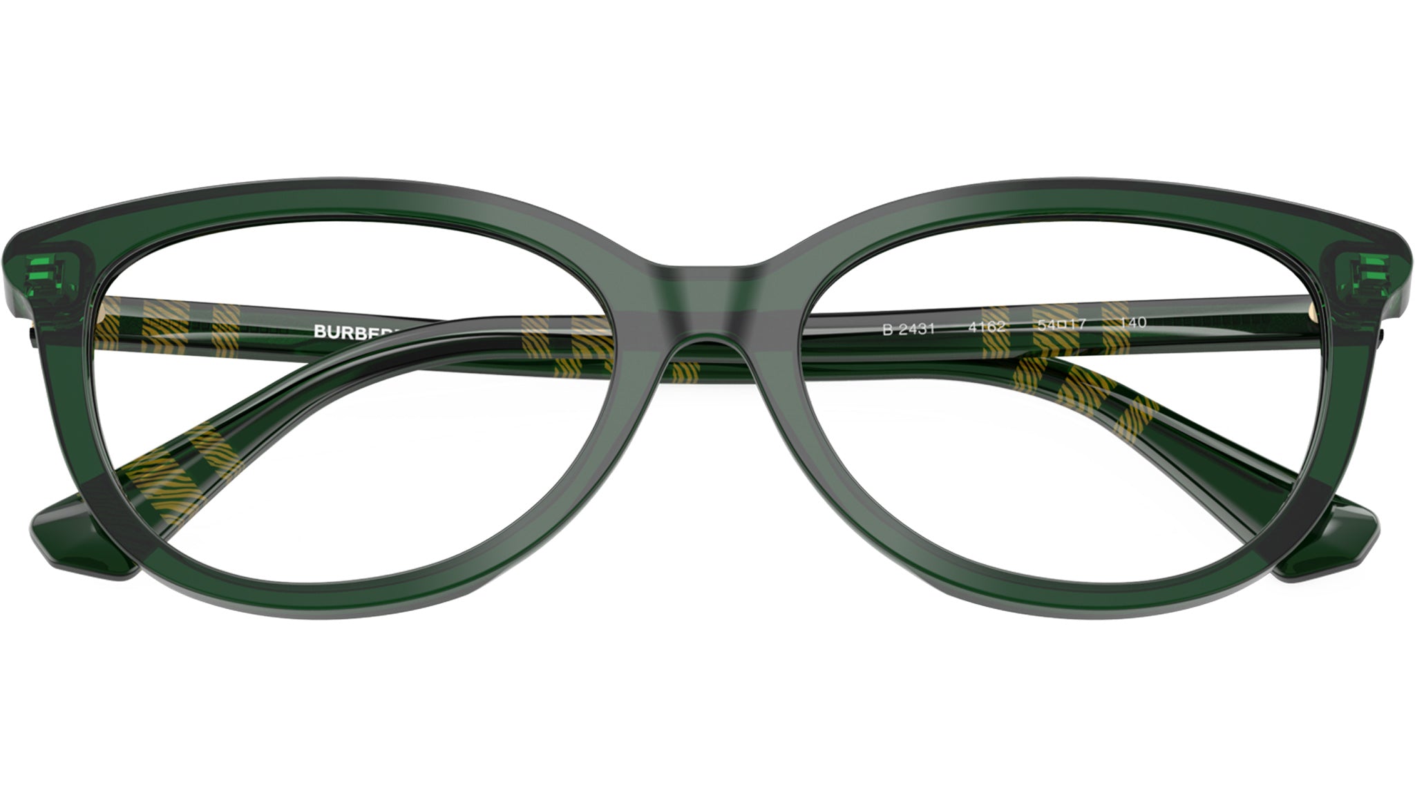 Occhiali da vista Burberry donna modello BE2431 4162 con montatura full rim in acetato verde e lenti demo. Vestibilità a ponte alto. Fitting consigliato: M. Linea: Tubular Check. Codice modello: 0BE2431. Codice colore: 4162. Rivenditore autorizzato online Burberry. Gli occhiali includono la custodia e gli accessori originali e sono coperti da una garanzia globale di 12 mesi.