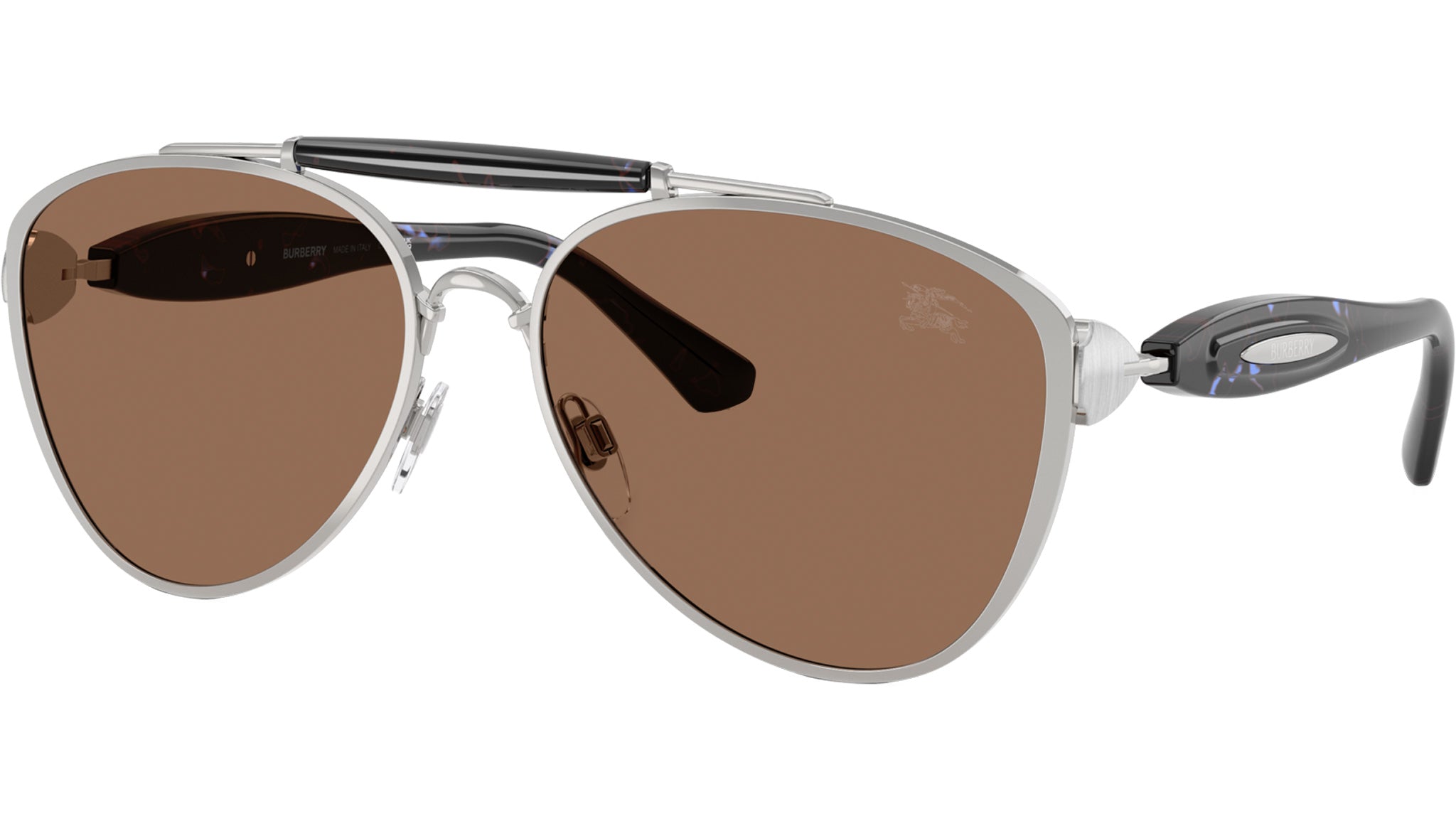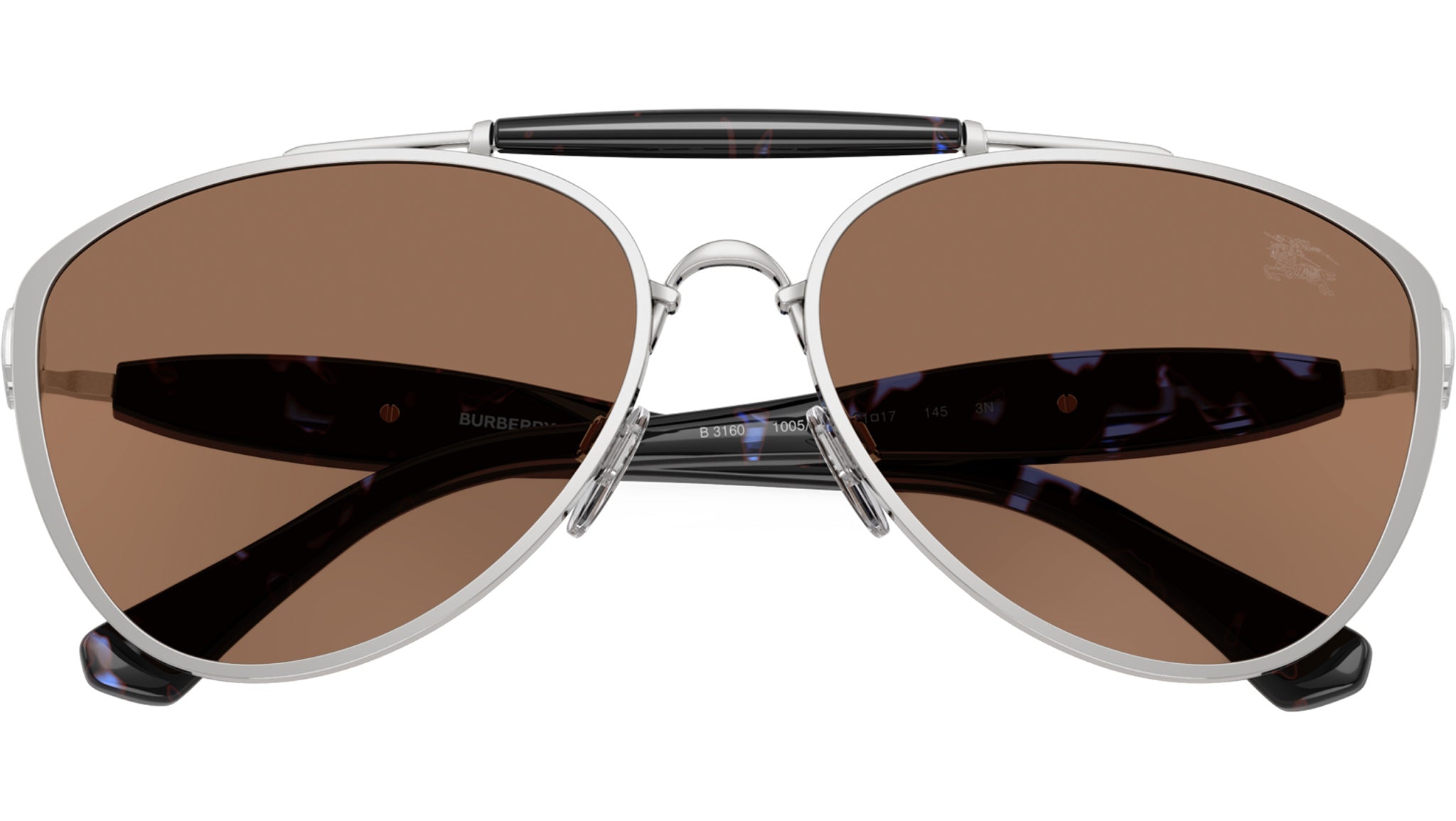 Occhiali da sole Burberry unisex modello BE3160 100573 con montatura full rim in metallo argento e lenti in bio poliammide marrone scuro. Naselli regolabili. Fitting consigliato: XXL. Linea: Lookbook Autumn 24 Limited Dis. Codice modello: 0BE3160. Codice colore: 100573. Rivenditore autorizzato online Burberry. Gli occhiali includono la custodia e gli accessori originali e sono coperti da una garanzia globale di 12 mesi.