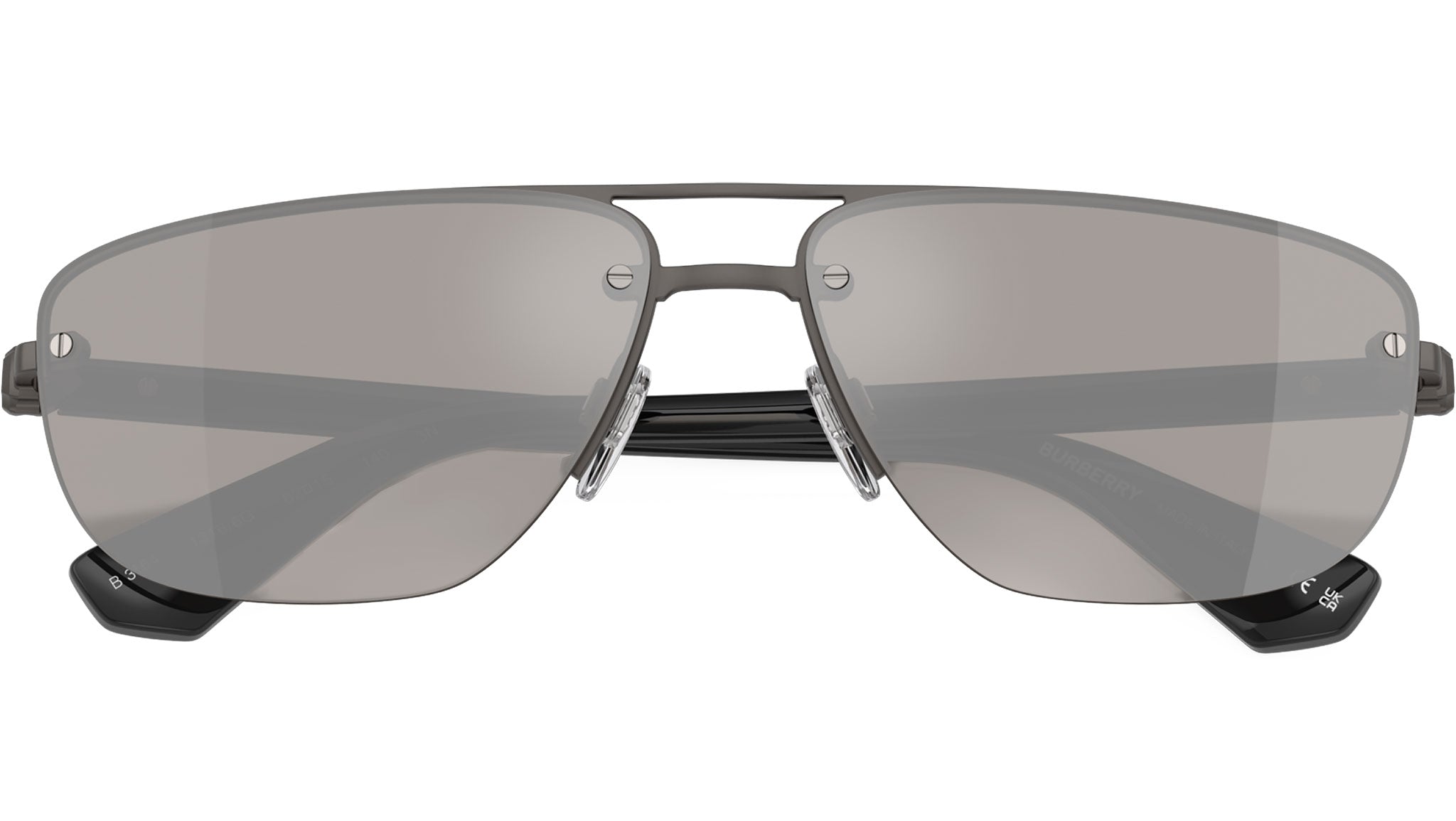 Occhiali da sole Burberry uomo modello BE3164 13166G con montatura full rim in metallo grigio opaco e lenti in bio poliammide grigio chiaro specchiato argento. Naselli regolabili. Fitting consigliato: XXL. Linea: Metal Shield. Codice modello: 0BE3164. Codice colore: 13166G. Rivenditore autorizzato online Burberry. Gli occhiali includono la custodia e gli accessori originali e sono coperti da una garanzia globale di 12 mesi.