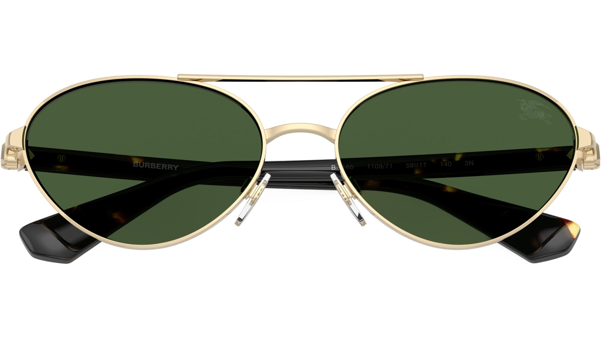 Occhiali da sole Burberry donna modello BE3165 110971 con montatura full rim in metallo oro chiaro e lenti in bio poliammide verde scuro. Naselli regolabili. Fitting consigliato: XL. Linea: Metal Shield. Codice modello: 0BE3165. Codice colore: 110971. Rivenditore autorizzato online Burberry. Gli occhiali includono la custodia e gli accessori originali e sono coperti da una garanzia globale di 12 mesi.