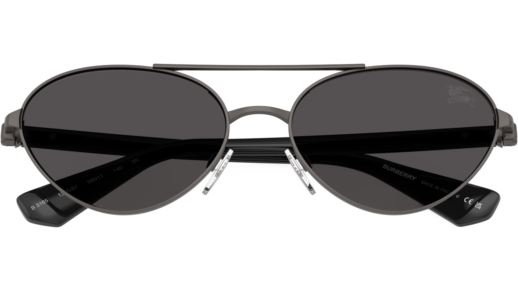 Occhiali da sole Burberry donna modello BE3165 131687 con montatura full rim in metallo grigio opaco e lenti in bio poliammide grigio scuro. Naselli regolabili. Fitting consigliato: XL. Linea: Metal Shield. Codice modello: 0BE3165. Codice colore: 131687. Rivenditore autorizzato online Burberry. Gli occhiali includono la custodia e gli accessori originali e sono coperti da una garanzia globale di 12 mesi.