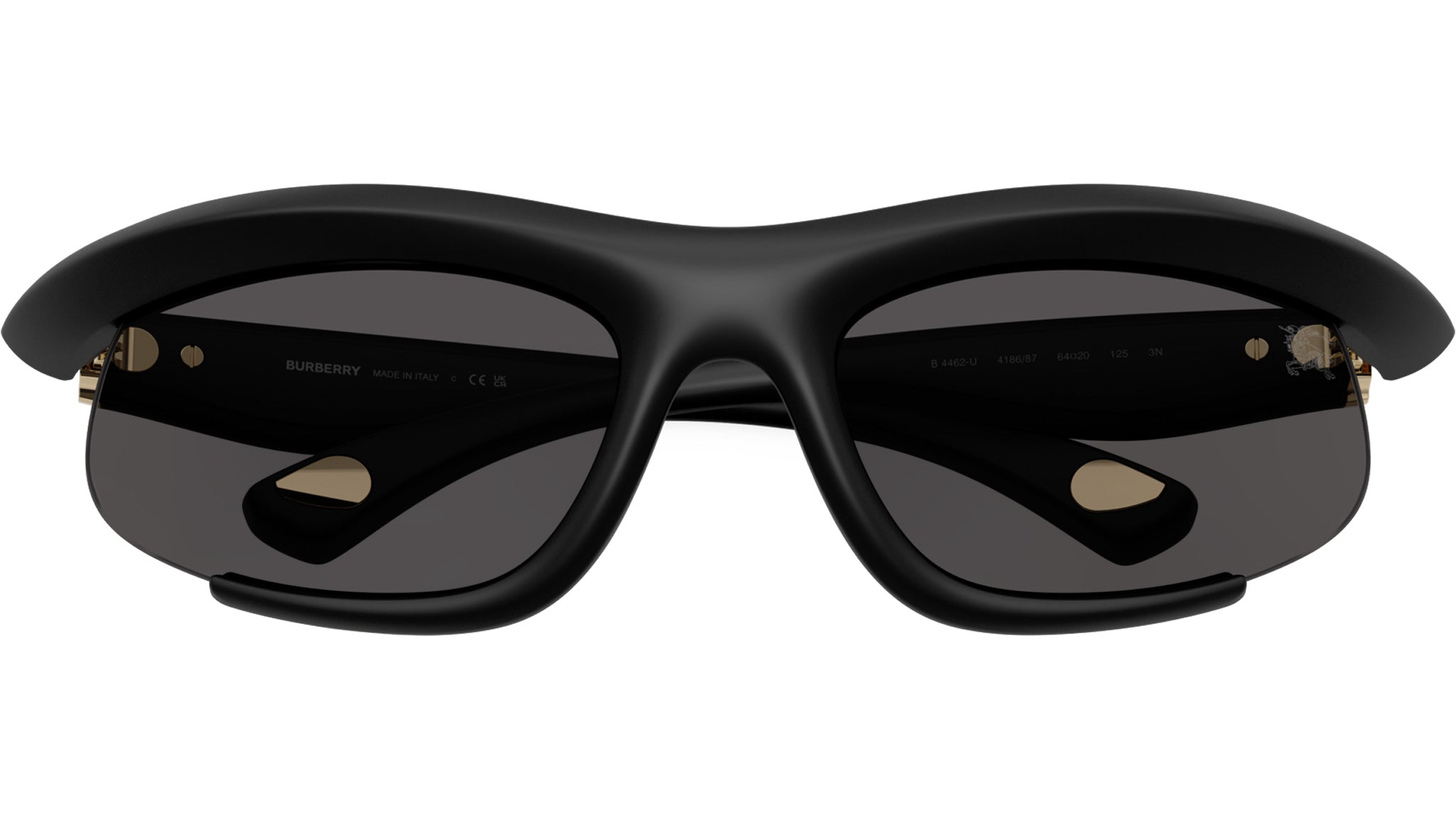 Occhiali da sole Burberry donna modello BE4462 418687 con montatura full rim in iniettato gomma nera e lenti in bio poliammide grigio scuro. Vestibilità a ponte alto. Fitting consigliato: M. Linea: Spring Lookbook. Codice modello: 0BE4462. Codice colore: 418687. Rivenditore autorizzato online Burberry. Gli occhiali includono la custodia e gli accessori originali e sono coperti da una garanzia globale di 12 mesi.