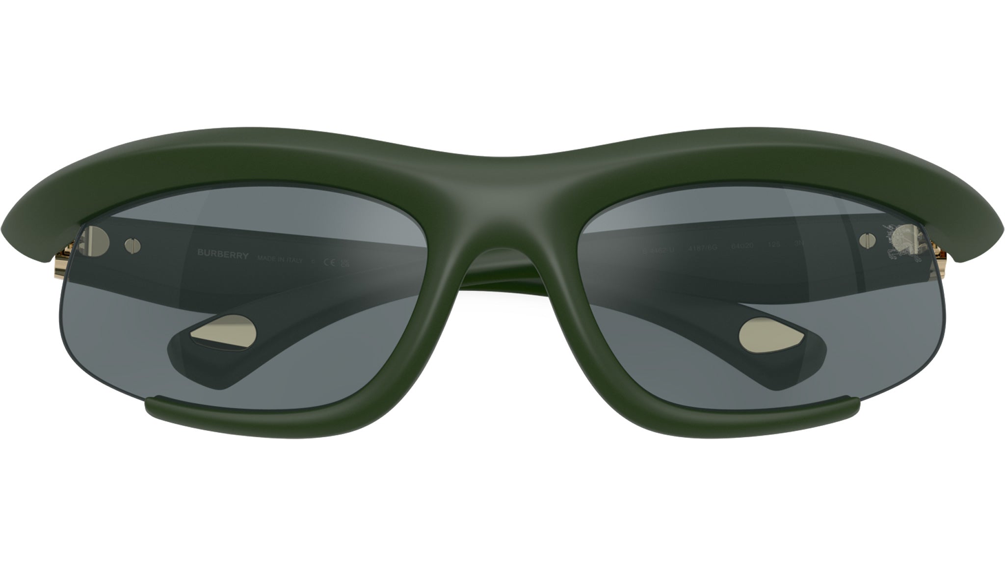 Occhiali da sole Burberry donna modello BE4462 41876G con montatura full rim in iniettato verde effetto gommato e lenti in bio poliammide grigio nero specchiato. Vestibilità a ponte alto. Fitting consigliato: M. Linea: Spring Lookbook. Codice modello: 0BE4462. Codice colore: 41876G. Rivenditore autorizzato online Burberry. Gli occhiali includono la custodia e gli accessori originali e sono coperti da una garanzia globale di 12 mesi.