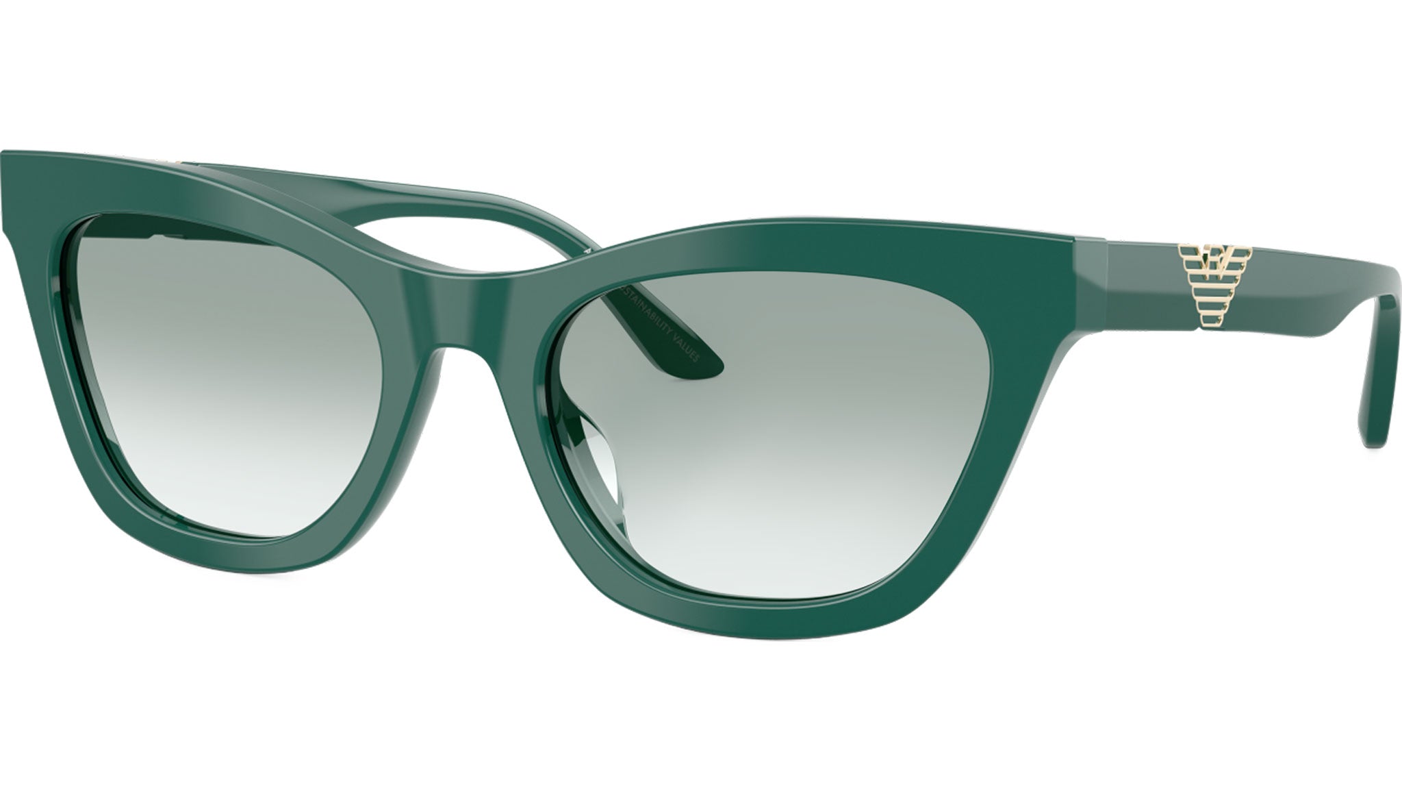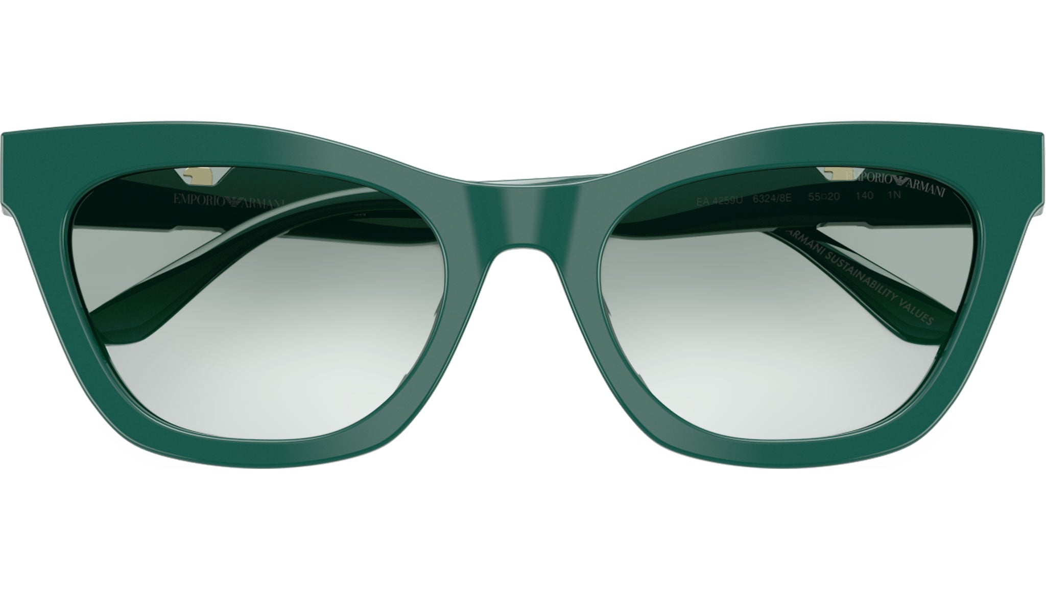 Occhiali da sole Emporio Armani EA4259U 63248E con montatura cat eye in acetato verde lucido e lenti in bio poliammide color trasparente sfumato verde. Fit universale. Linea: Modern. Codice modello: 0EA4259U. Codice colore: 63248E. Rivenditore autorizzato Emporio Armani online. Gli occhiali vengono consegnati con custodia e accessori originali e sono coperti dalla garanzia ufficiale di 12 mesi del produttore.