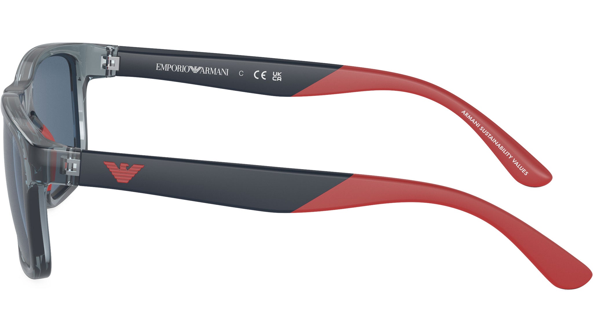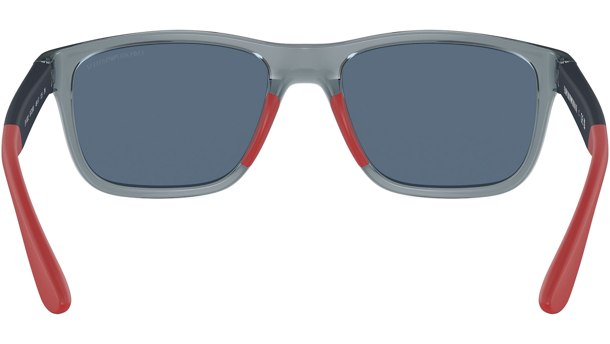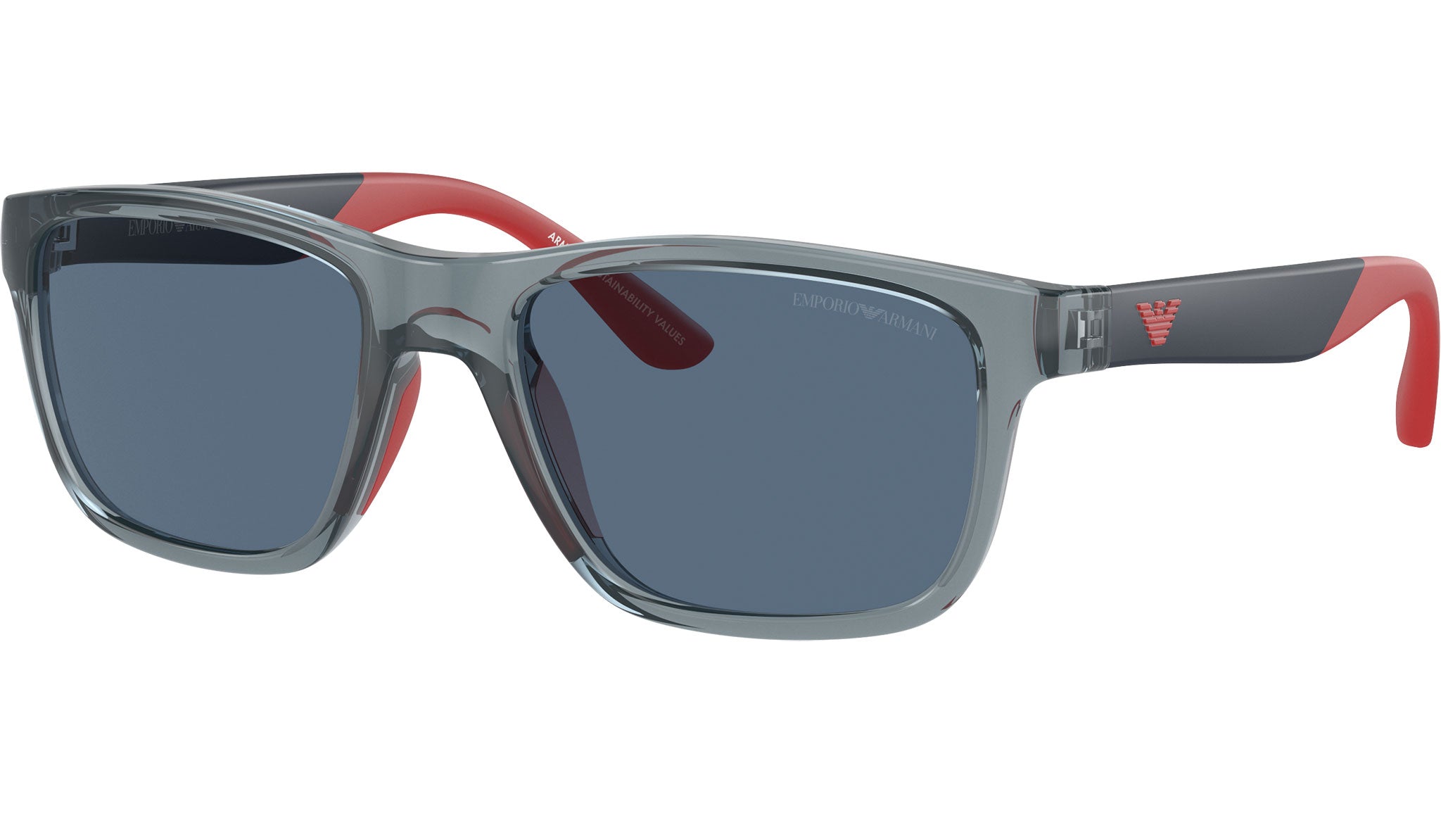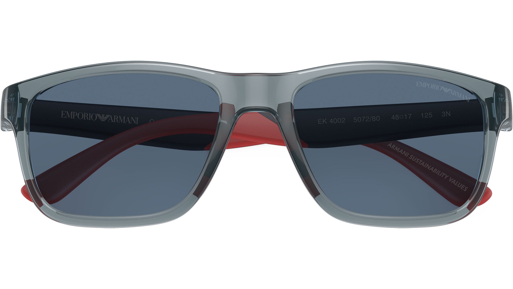 Occhiali da sole Emporio Armani Kids EK4002 507280 con montatura d-frame in iniettato blu trasparente lucido e lenti in bio poliammide color blu scuro. Vestibilità a ponte alto. Linea: Essential Leisure. Codice modello: 0EK4002. Codice colore: 507280. Rivenditore autorizzato Emporio Armani Kids online. Gli occhiali vengono consegnati con custodia e accessori originali e sono coperti dalla garanzia ufficiale di 12 mesi del produttore.