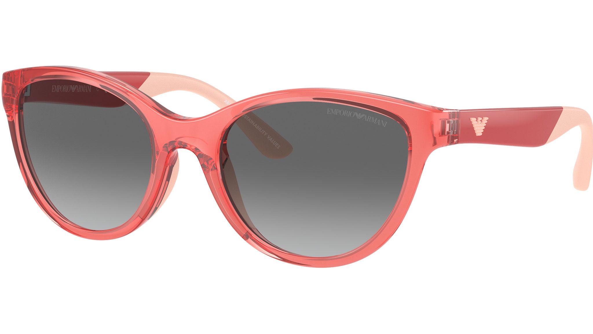 Occhiali da sole Emporio Armani Kids EK4003 537711 con montatura cat eye in iniettato shiny transparent coral e lenti in bio poliammide color grigio sfumato. Vestibilità a ponte alto. Linea: Essential Leisure. Codice modello: 0EK4003. Codice colore: 537711. Rivenditore autorizzato Emporio Armani Kids online. Gli occhiali vengono consegnati con custodia e accessori originali e sono coperti dalla garanzia ufficiale di 12 mesi del produttore.