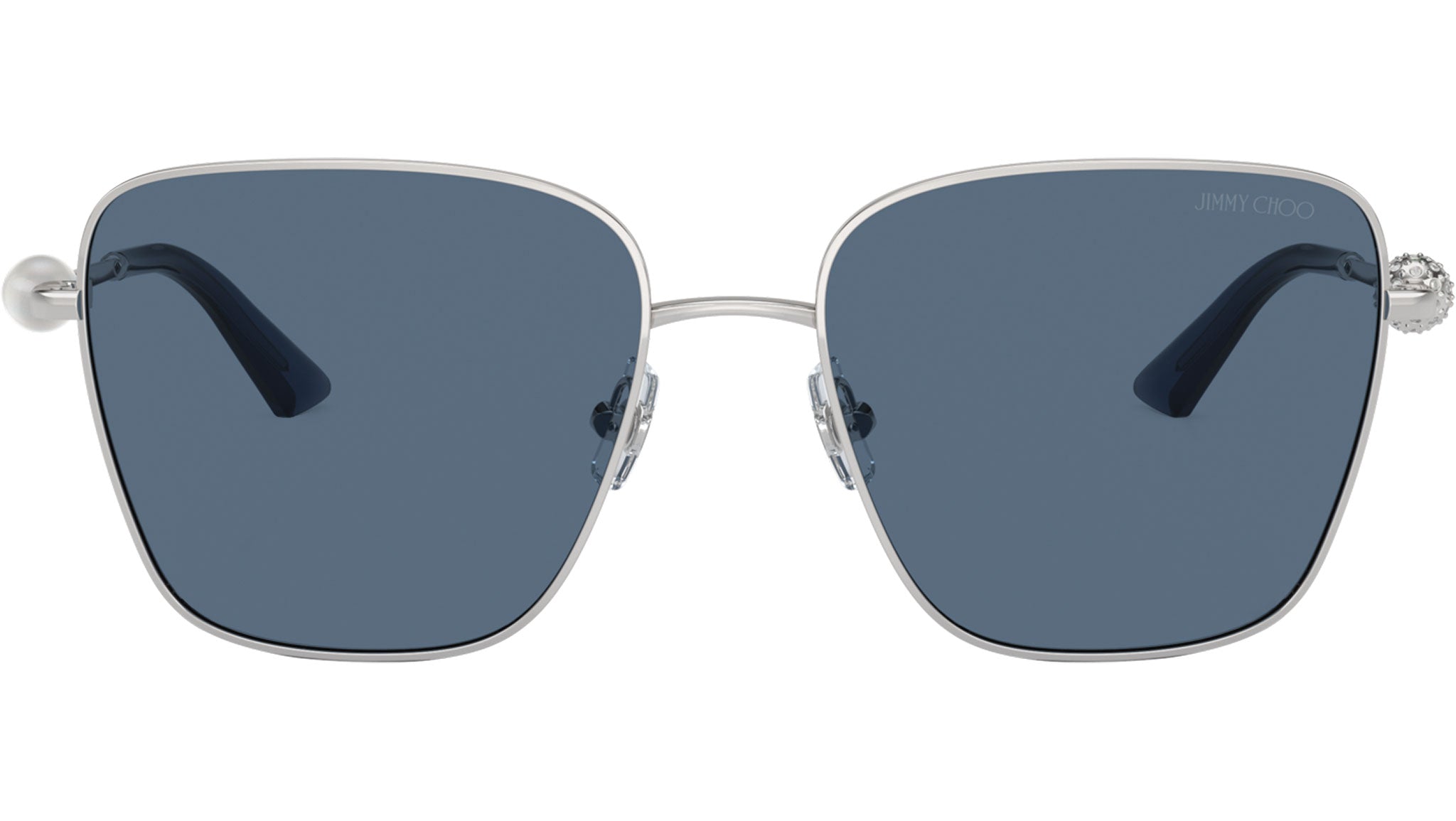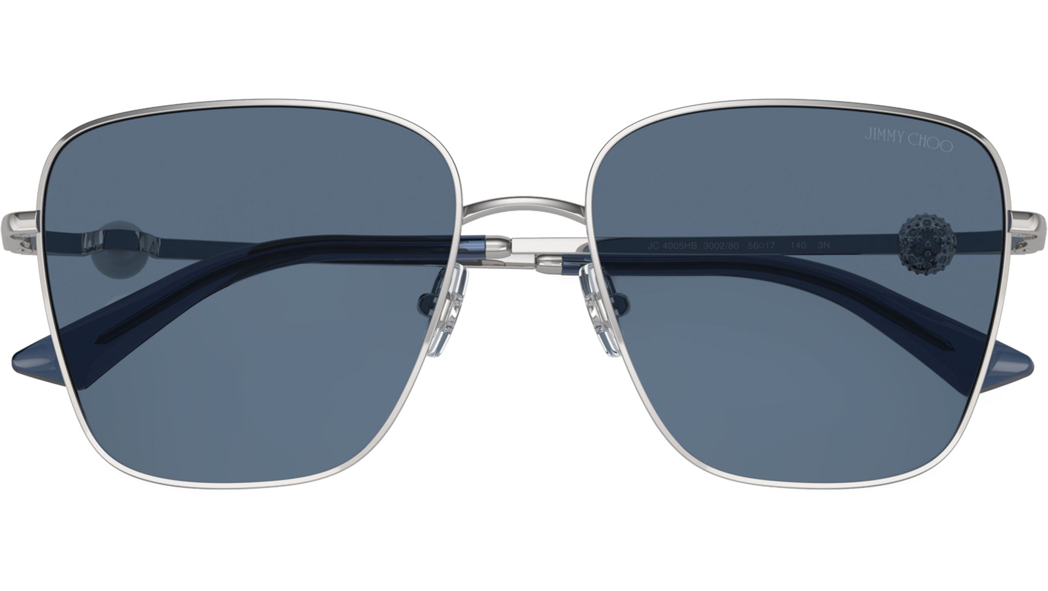 Occhiali da sole Jimmy Choo JC4005HB 300280 donna, con montatura d-frame in metallo color argento e lenti blu scuro in bio poliammide. Naselli regolabili. Linea: Pearl. Codice modello: JC4005HB. Codice colore: 300280. Rivenditore autorizzato Swarovski Eyewear online. Ogni prodotto Swarovski viene consegnato con astuccio originale e accessori ed è coperto da garanzia del produttore di 12 mesi.