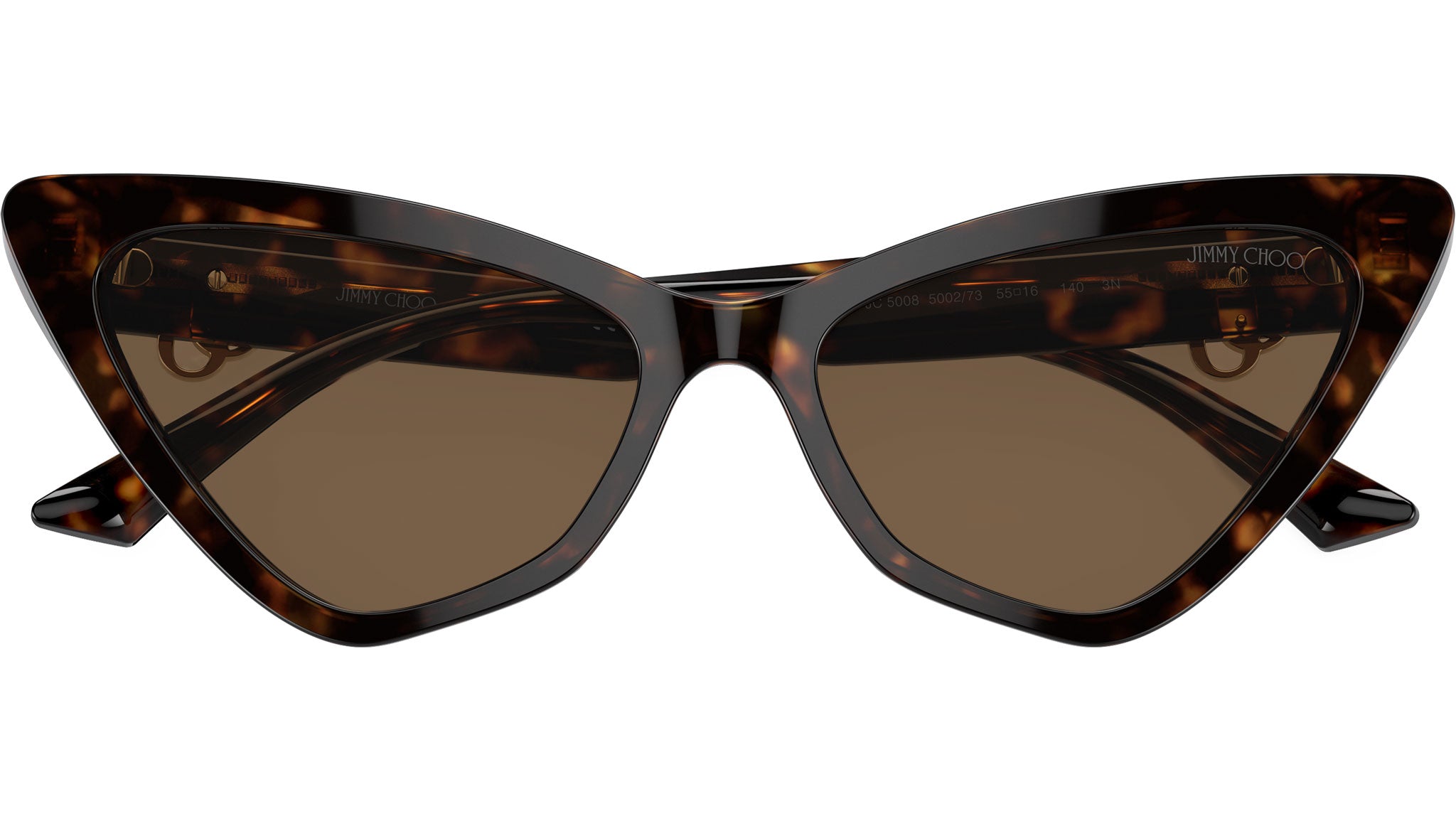 Occhiali da sole Jimmy Choo JC5008 500273 donna, con montatura cat eye in acetato color avana e lenti marrone scuro in bio poliammide. Vestibilità a ponte alto. Linea: JC Monogram. Codice modello: JC5008. Codice colore: 500273. Rivenditore autorizzato Swarovski Eyewear online. Ogni prodotto Swarovski viene consegnato con astuccio originale e accessori ed è coperto da garanzia del produttore di 12 mesi.