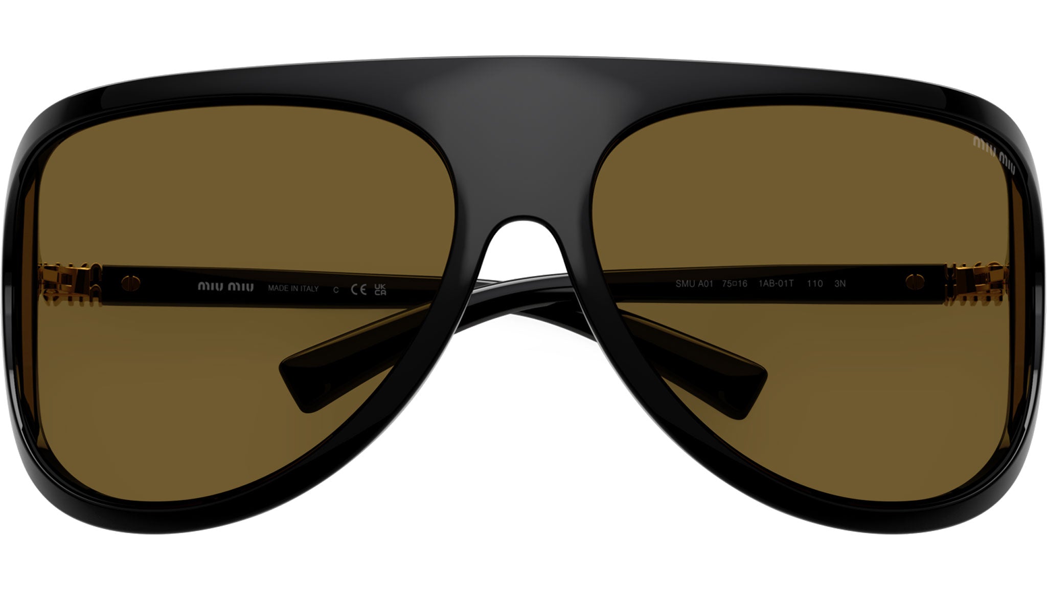 Occhiali da sole Miu Miu MU A01S 1AB01T donna con montatura geometrica in Injected nero e lenti in poliammide color marrone scuro. Vestibilità a ponte alto. Linea: Fashion Show. Codice modello: 0MU A01S. Codice colore: 1AB01T. Made in Italy. Rivenditore autorizzato Miu Miu online. Gli occhiali vengono consegnati con custodia e accessori originali e sono coperti dalla garanzia ufficiale di 12 mesi del produttore.