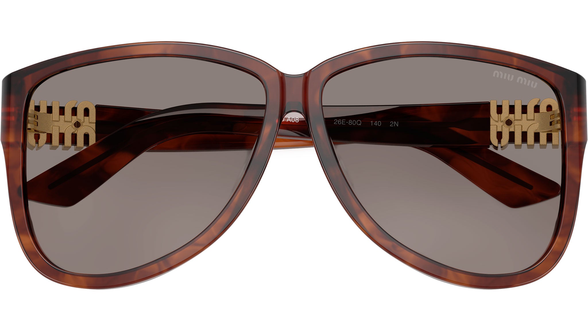 Occhiali da sole Miu Miu MU A08S 26E80Q donna con montatura aviatore in acetato tabacco striato e lenti in bio poliammide color grigio scuro. Vestibilità a ponte alto. Linea: Main Collection. Codice modello: 0MU A08S. Codice colore: 26E80Q. Made in Italy. Rivenditore autorizzato Miu Miu online. Gli occhiali vengono consegnati con custodia e accessori originali e sono coperti dalla garanzia ufficiale di 12 mesi del produttore.
