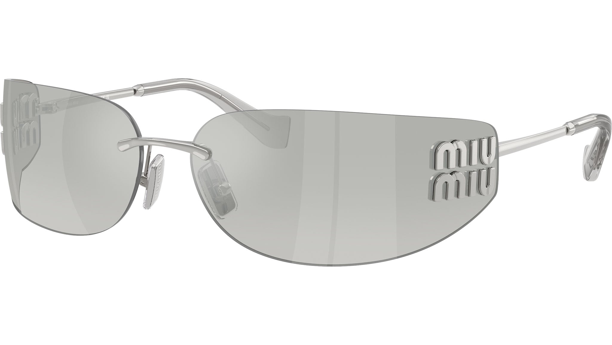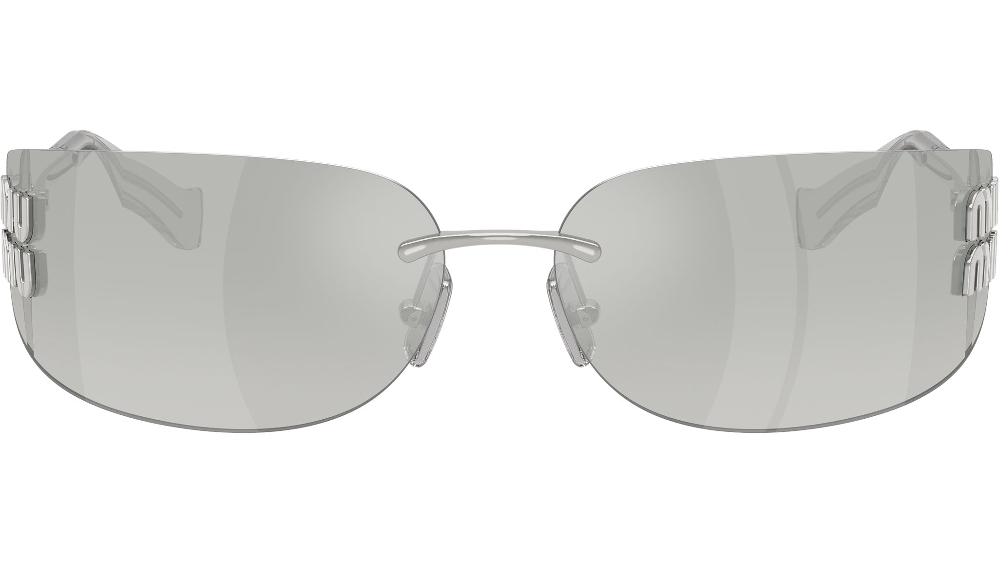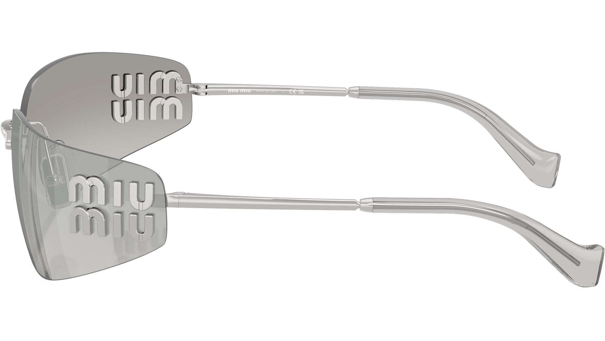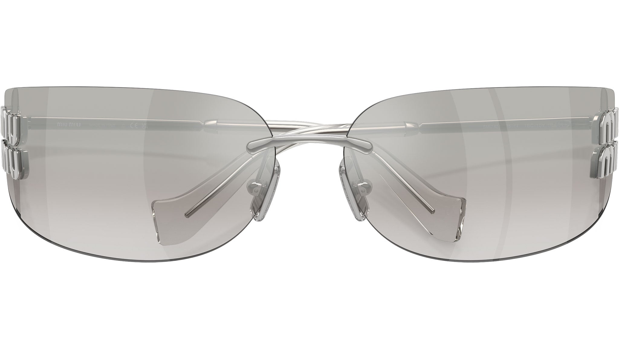 Occhiali da sole Miu Miu MU A51S 1BC10Y donna con montatura rettangolare in metallo argento e lenti in poliammide color grigio a specchio argento sfumato. Naselli regolabili. Linea: Fashion Show. Codice modello: 0MU A51S. Codice colore: 1BC10Y. Made in Italy. Rivenditore autorizzato Miu Miu online. Gli occhiali vengono consegnati con custodia e accessori originali e sono coperti dalla garanzia ufficiale di 12 mesi del produttore.