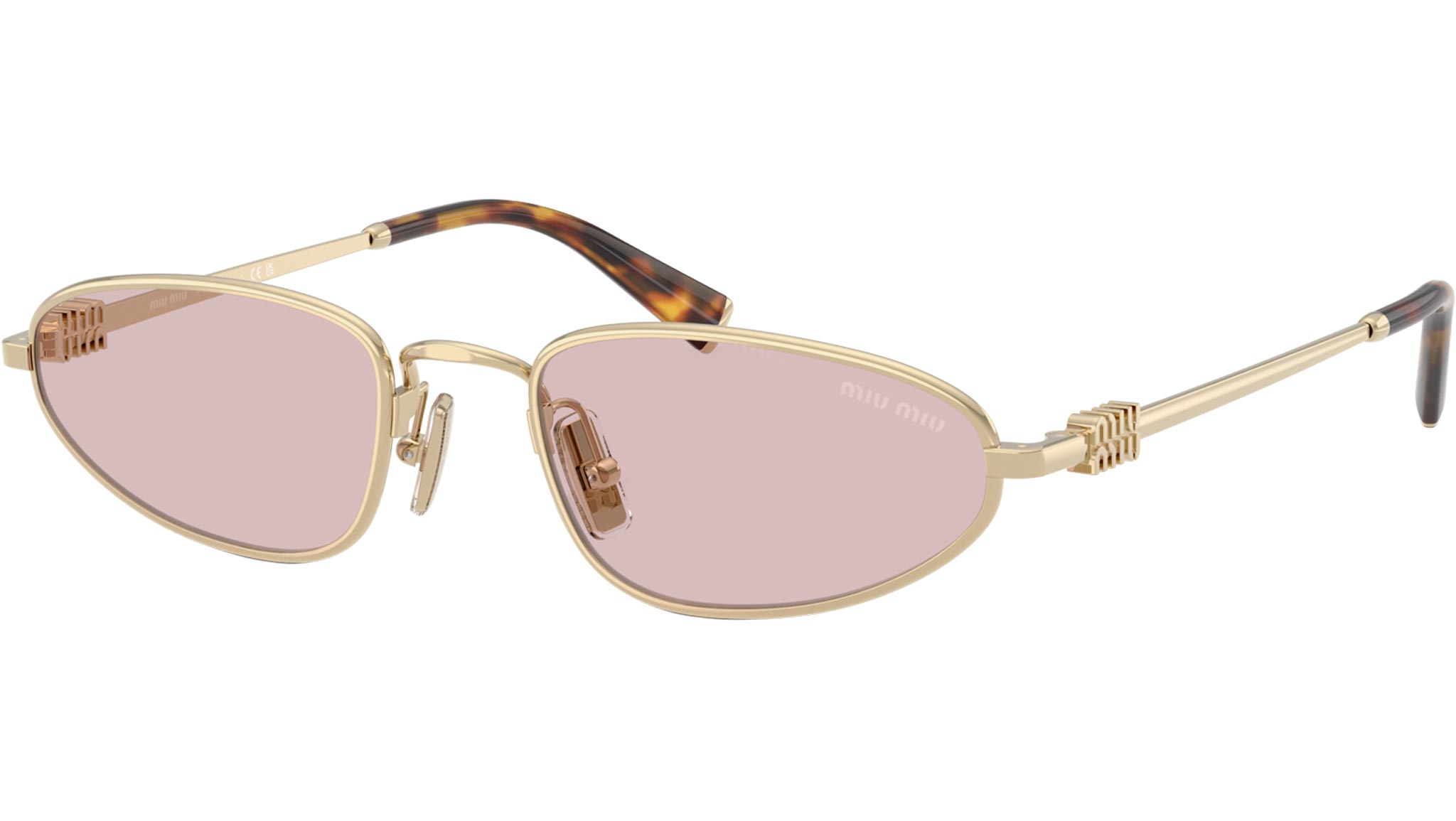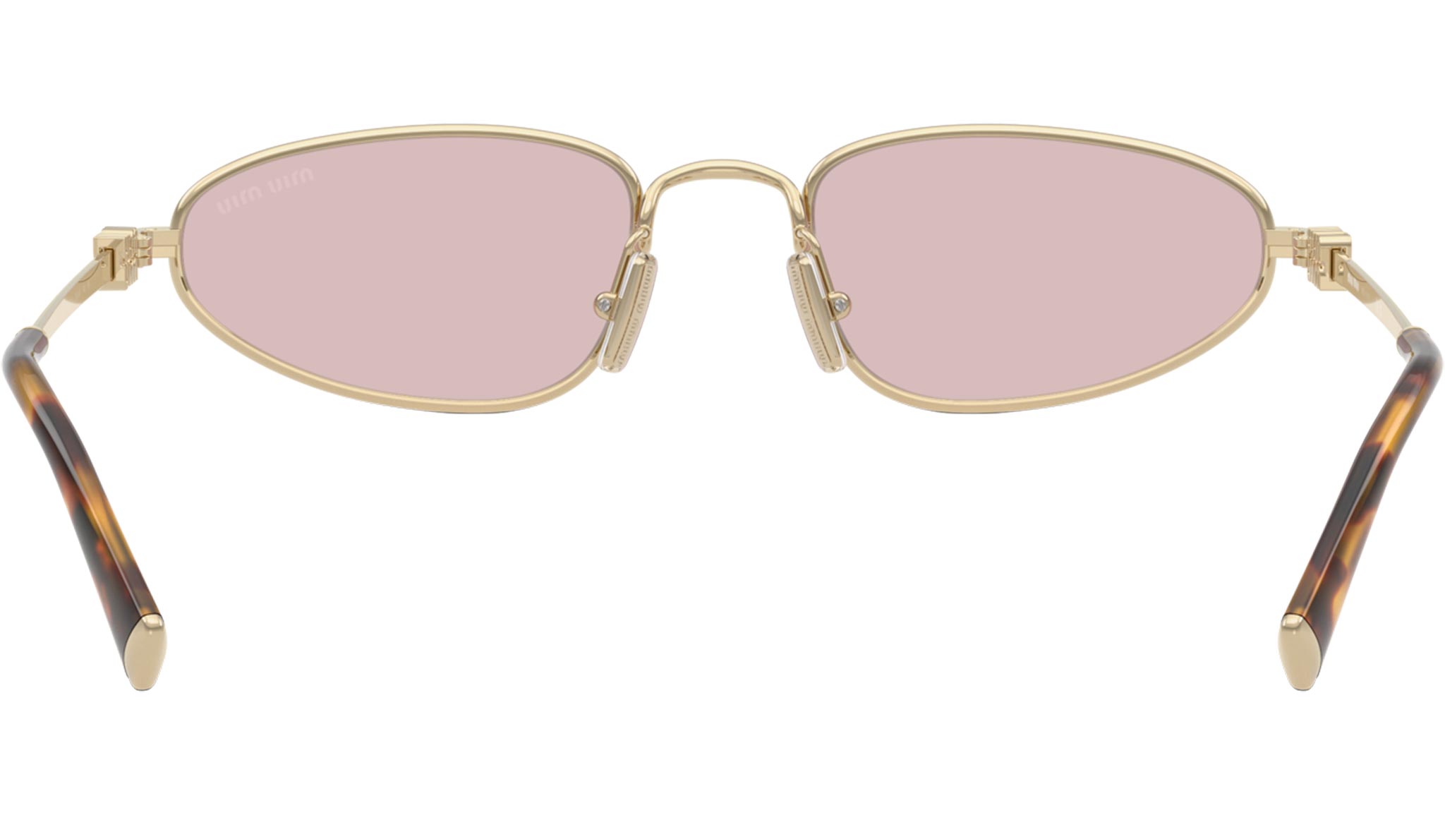 Occhiali da sole Miu Miu MU A52S ZVN4I0 donna con montatura geometrica in metallo oro pallido e lenti in bio poliammide color rosa. Naselli regolabili. Linea: Miu Regard. Codice modello: 0MU A52S. Codice colore: ZVN4I0. Made in Italy. Rivenditore autorizzato Miu Miu online. Gli occhiali vengono consegnati con custodia e accessori originali e sono coperti dalla garanzia ufficiale di 12 mesi del produttore.