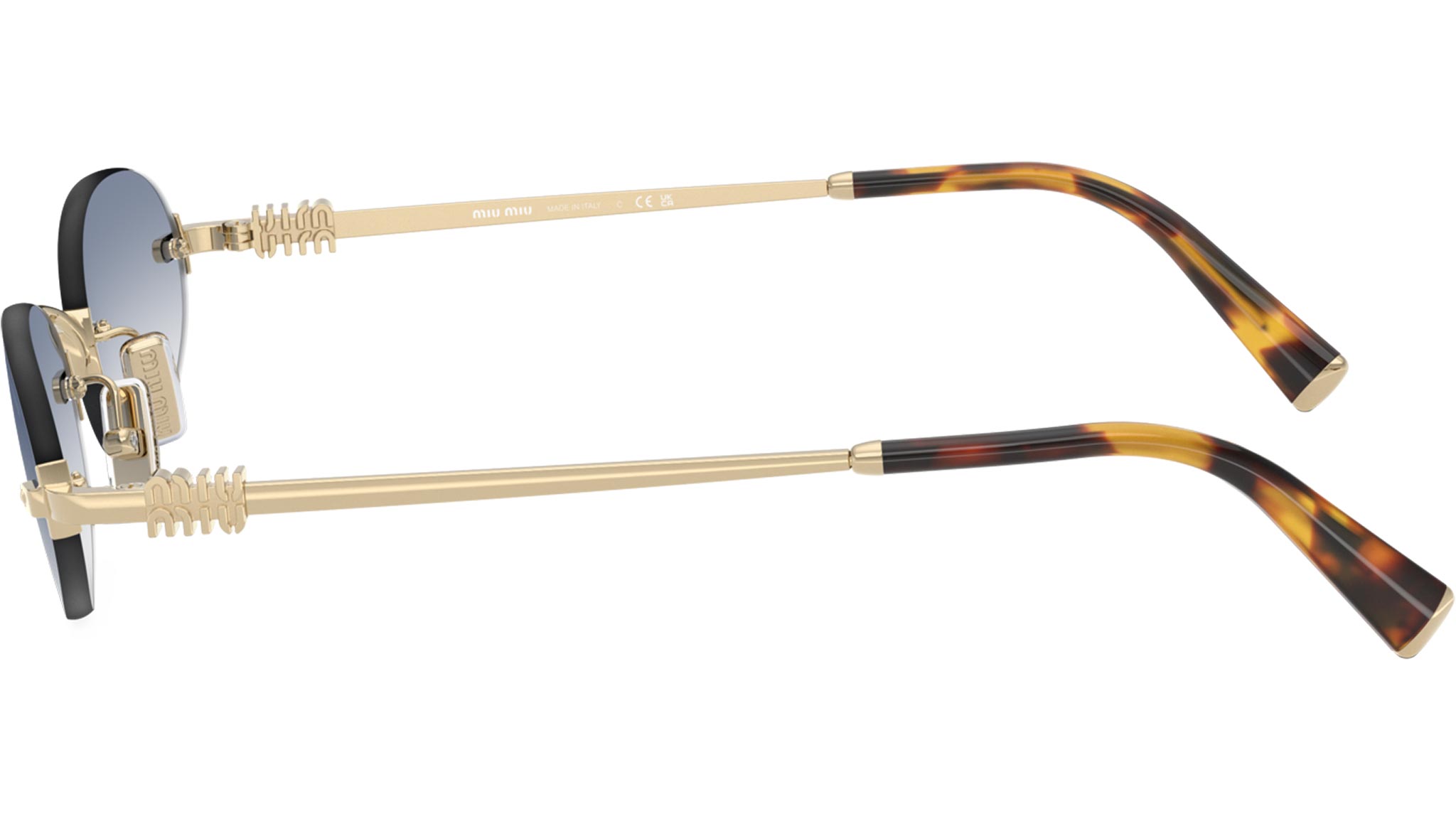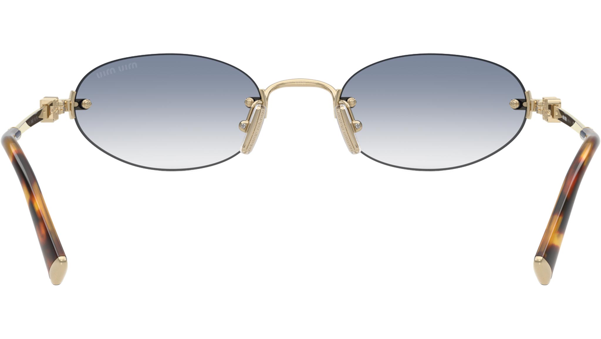 Occhiali da sole Miu Miu MU A54S ZVN80O donna con montatura ovale in metallo oro pallido e lenti in bio poliammide color gradiente trasparente azzurro chiaro. Naselli regolabili. Linea: Miu Regard. Codice modello: 0MU A54S. Codice colore: ZVN80O. Made in Italy. Rivenditore autorizzato Miu Miu online. Gli occhiali vengono consegnati con custodia e accessori originali e sono coperti dalla garanzia ufficiale di 12 mesi del produttore.