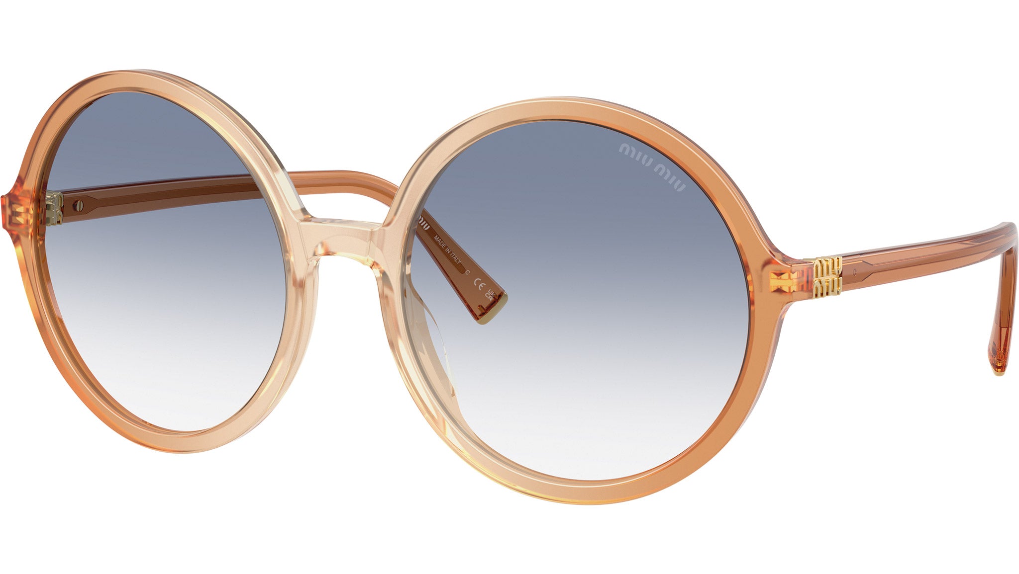 Occhiali da sole Miu Miu MU B02S 26G80O donna con montatura rotonda in acetato marrone sfumato e lenti in bio poliammide color trasparente sfumato blu chiaro. Vestibilità a ponte alto. Linea: Main Collection. Codice modello: 0MU B02S. Codice colore: 26G80O. Made in Italy. Rivenditore autorizzato Miu Miu online. Gli occhiali vengono consegnati con custodia e accessori originali e sono coperti dalla garanzia ufficiale di 12 mesi del produttore.
