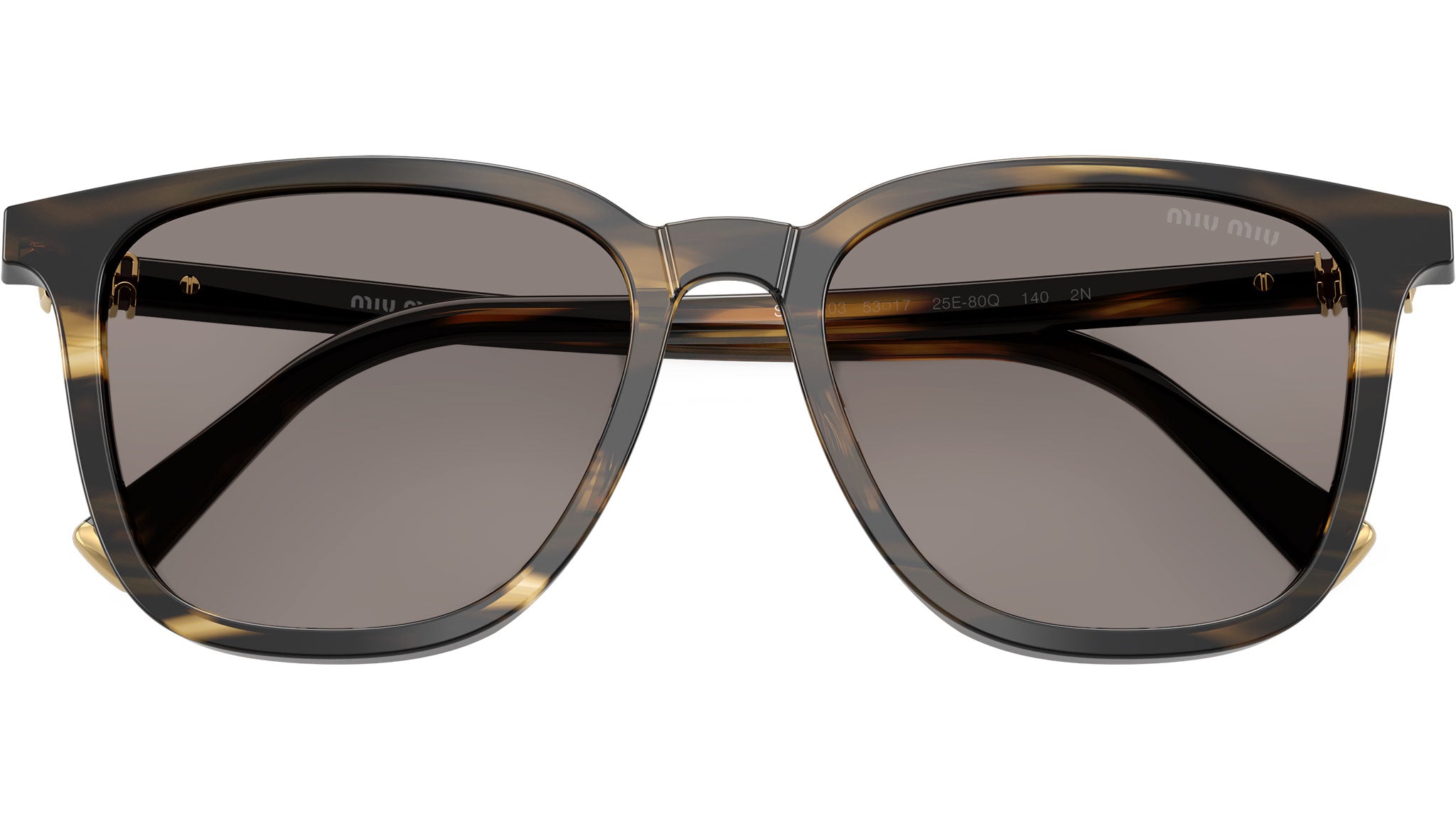 Occhiali da sole Miu Miu MU B03S 25E80Q donna con montatura quadrata in acetato loden rigato e lenti in bio poliammide color grigio scuro. Vestibilità a ponte alto. Linea: Main Collection. Codice modello: 0MU B03S. Codice colore: 25E80Q. Made in Italy. Rivenditore autorizzato Miu Miu online. Gli occhiali vengono consegnati con custodia e accessori originali e sono coperti dalla garanzia ufficiale di 12 mesi del produttore.