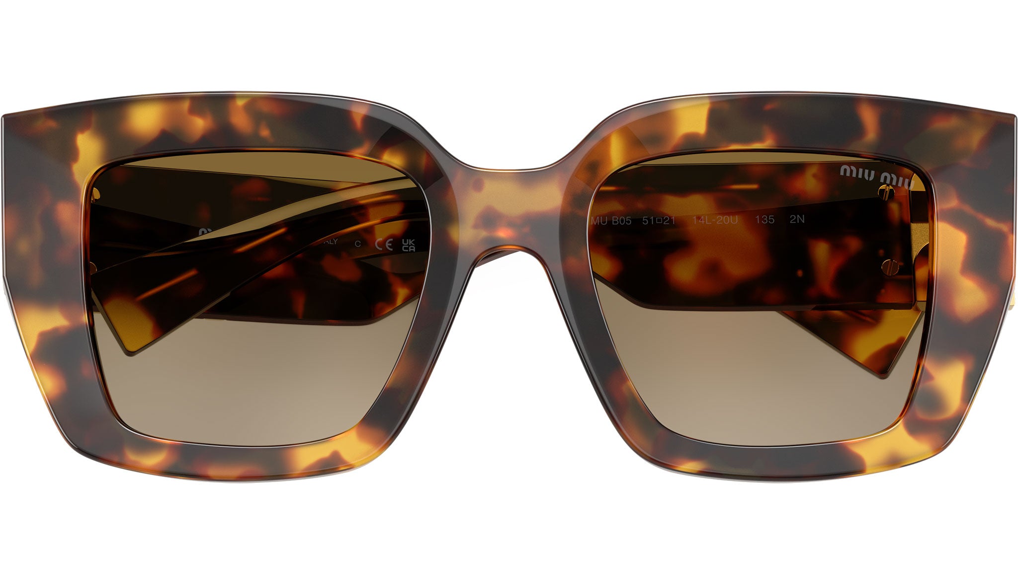 Occhiali da sole Miu Miu MU B05S 14L20U donna con montatura quadrata in acetato avana miele e lenti in bio poliammide color gradiente marrone. Vestibilità a ponte alto. Linea: Main Collection. Codice modello: 0MU B05S. Codice colore: 14L20U. Made in Italy. Rivenditore autorizzato Miu Miu online. Gli occhiali vengono consegnati con custodia e accessori originali e sono coperti dalla garanzia ufficiale di 12 mesi del produttore.