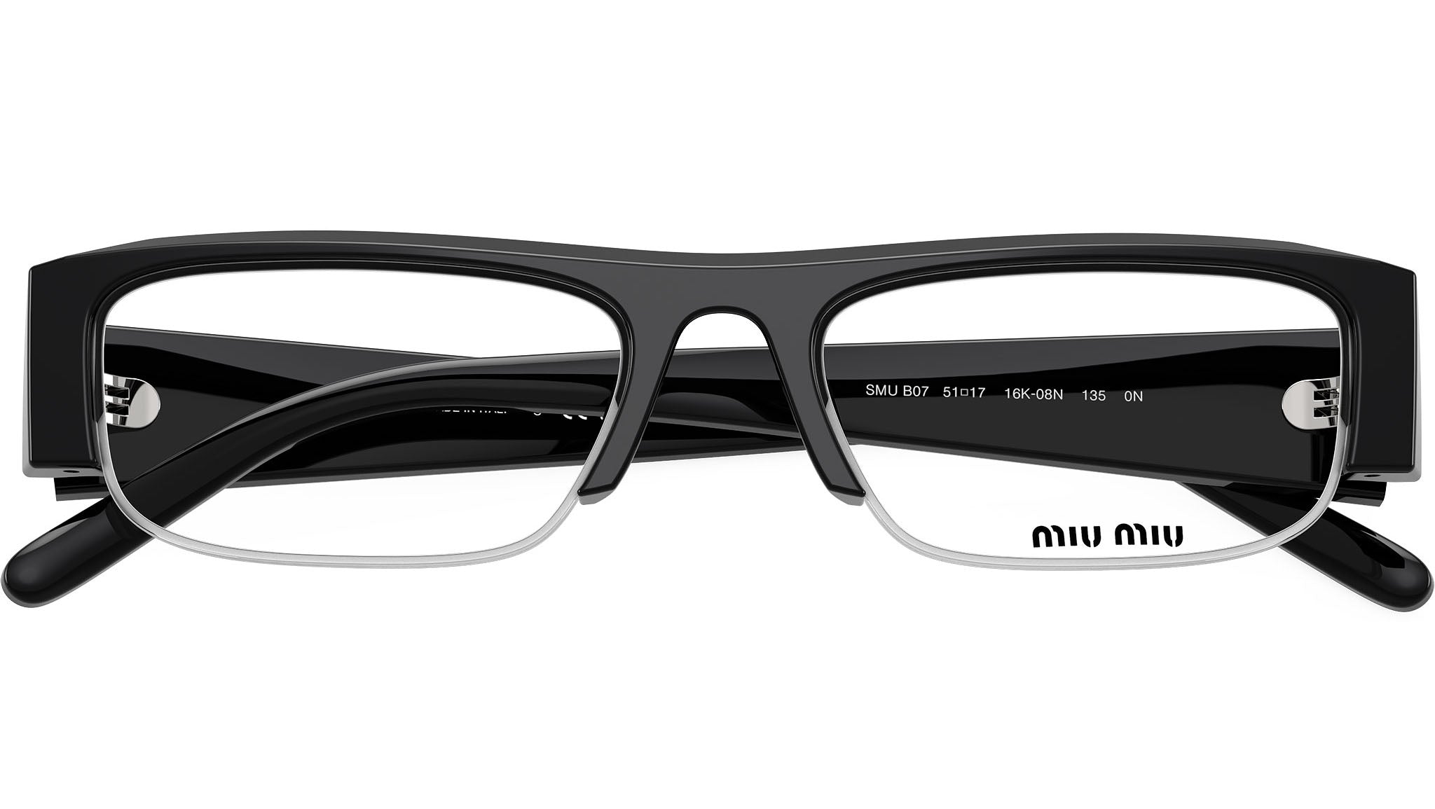 Occhiali da sole Miu Miu MU B07S 16K08N donna con montatura rettangolare in acetato nero e lenti in bio poliammide color blu viola chiaro. Vestibilità a ponte alto. Linea: Fashion Show. Codice modello: 0MU B07S. Codice colore: 16K08N. Made in Italy. Rivenditore autorizzato Miu Miu online. Gli occhiali vengono consegnati con custodia e accessori originali e sono coperti dalla garanzia ufficiale di 12 mesi del produttore.