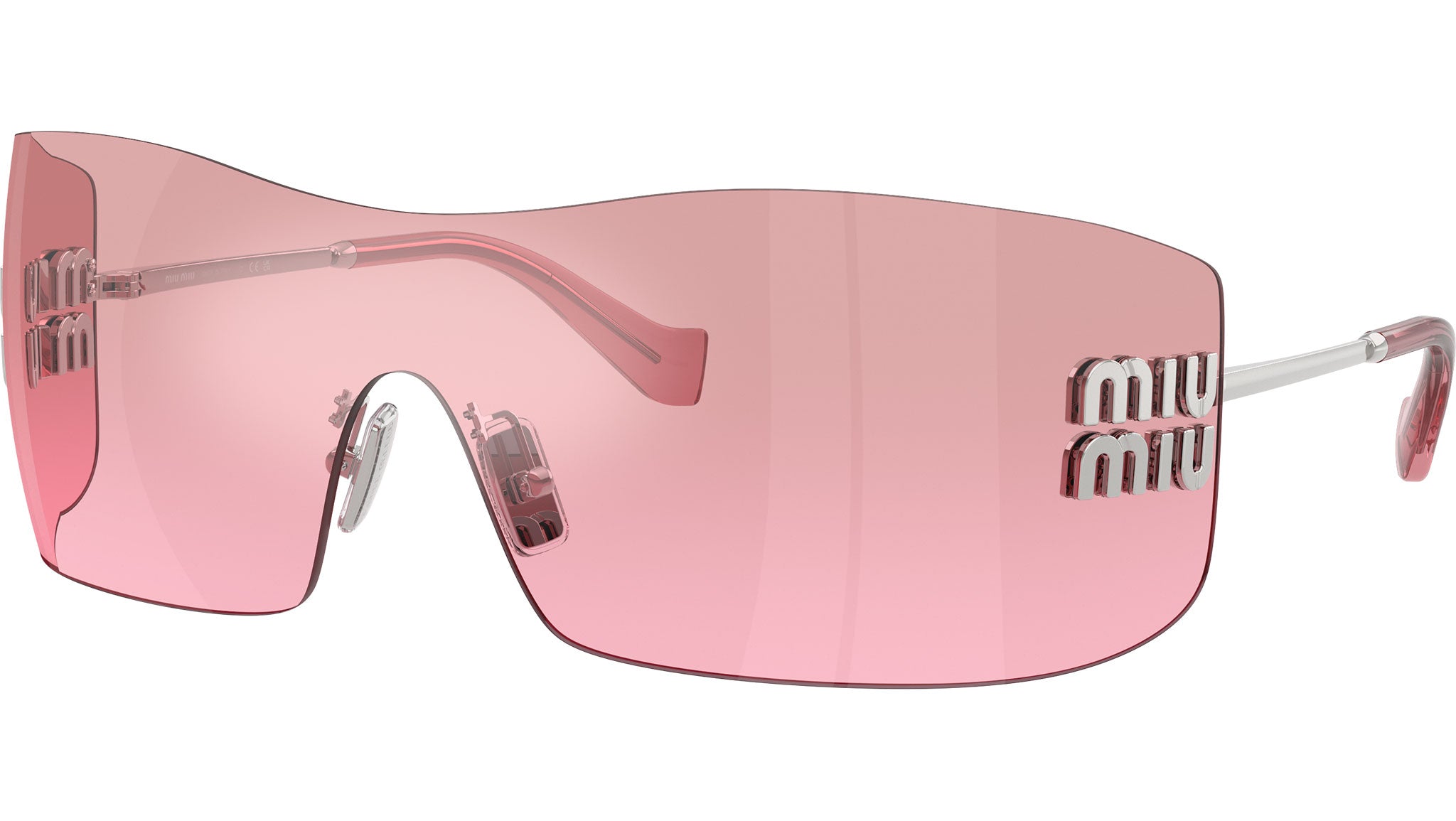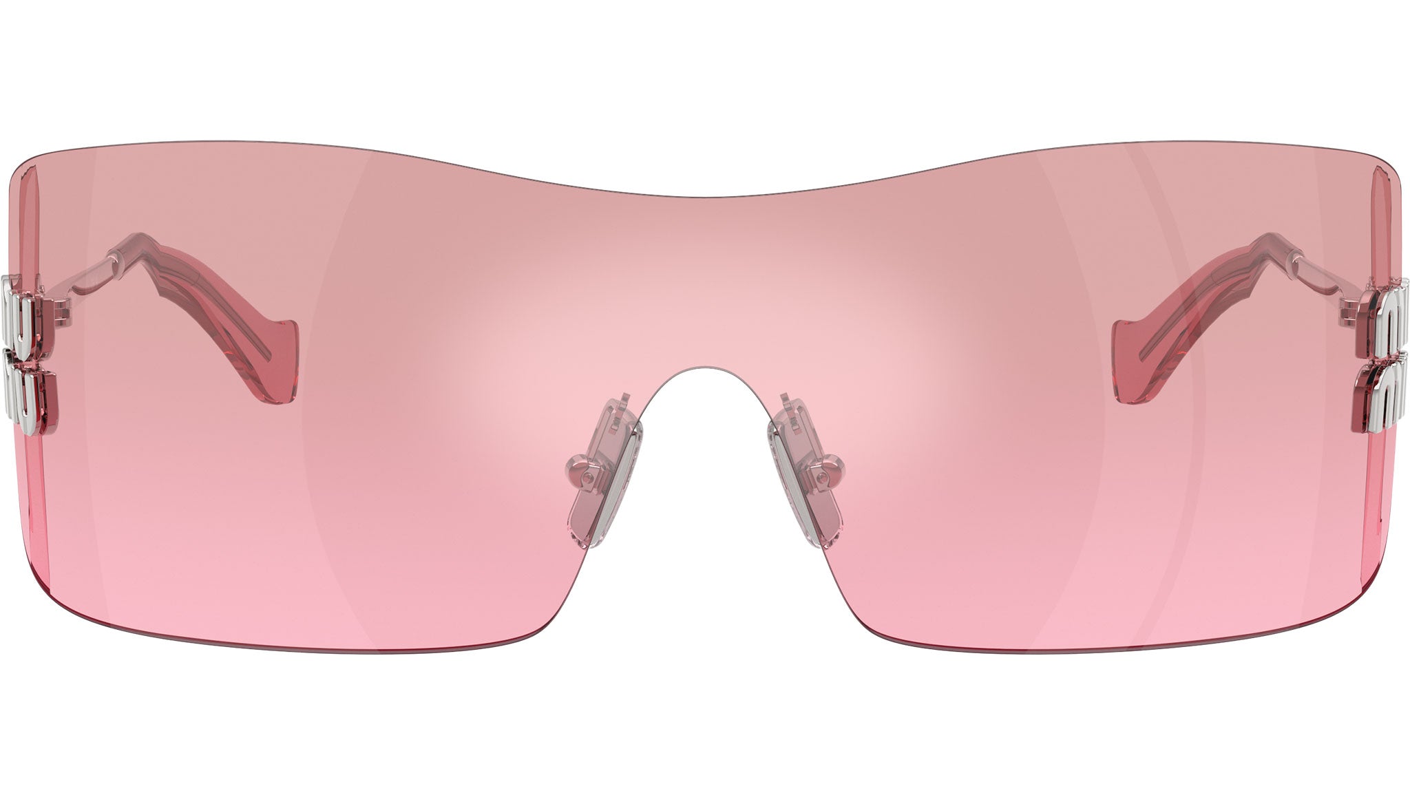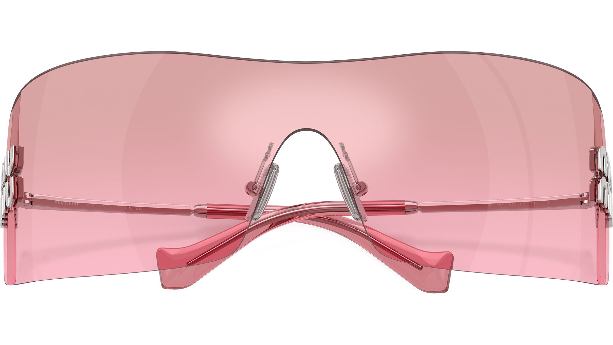 Occhiali da sole Miu Miu MU B53S 1BC70Y donna con montatura rettangolare in metallo argento e lenti in poliammide color sfumato in argento specchio rosa. Naselli regolabili. Linea: Main Collection. Codice modello: 0MU B53S. Codice colore: 1BC70Y. Made in Italy. Rivenditore autorizzato Miu Miu online. Gli occhiali vengono consegnati con custodia e accessori originali e sono coperti dalla garanzia ufficiale di 12 mesi del produttore.