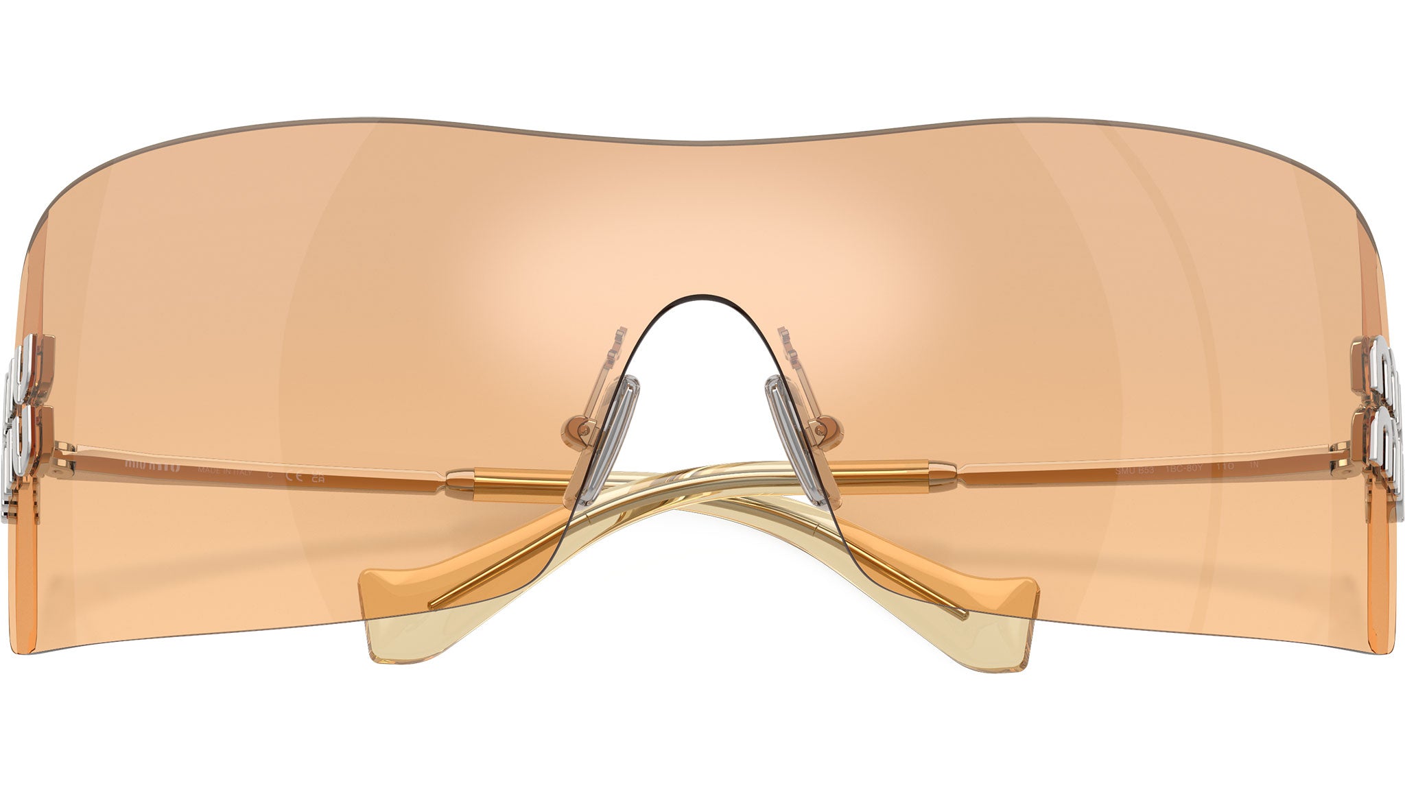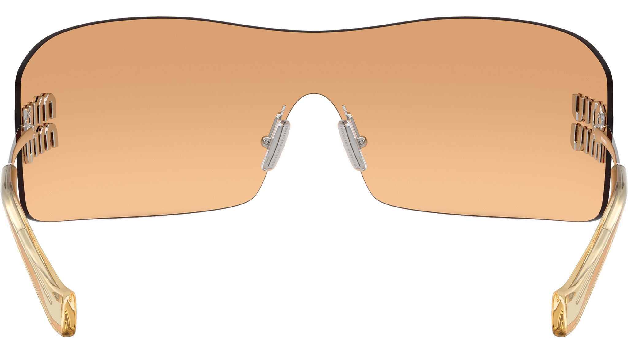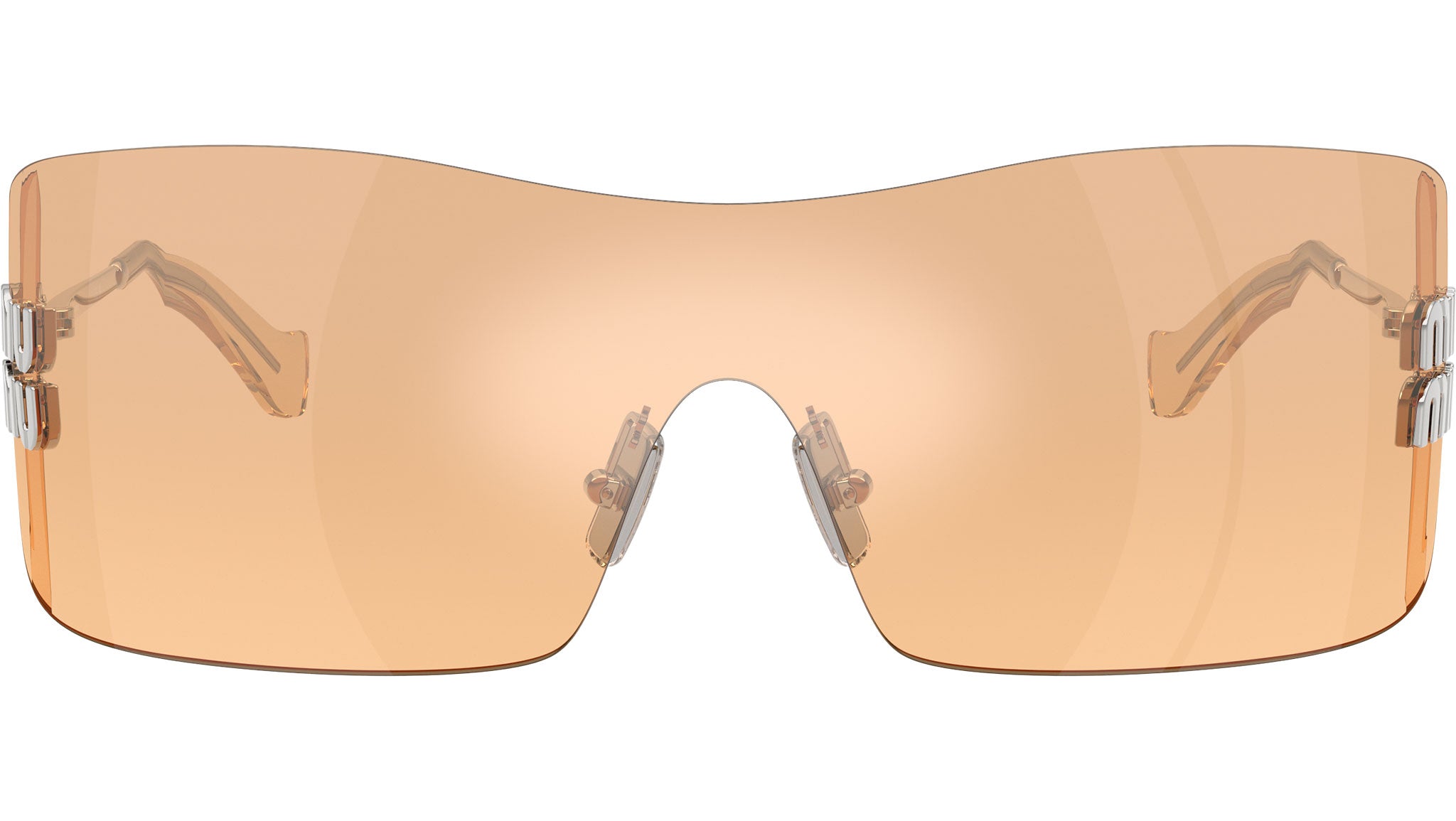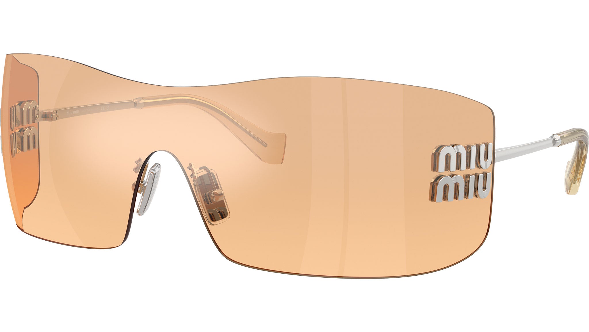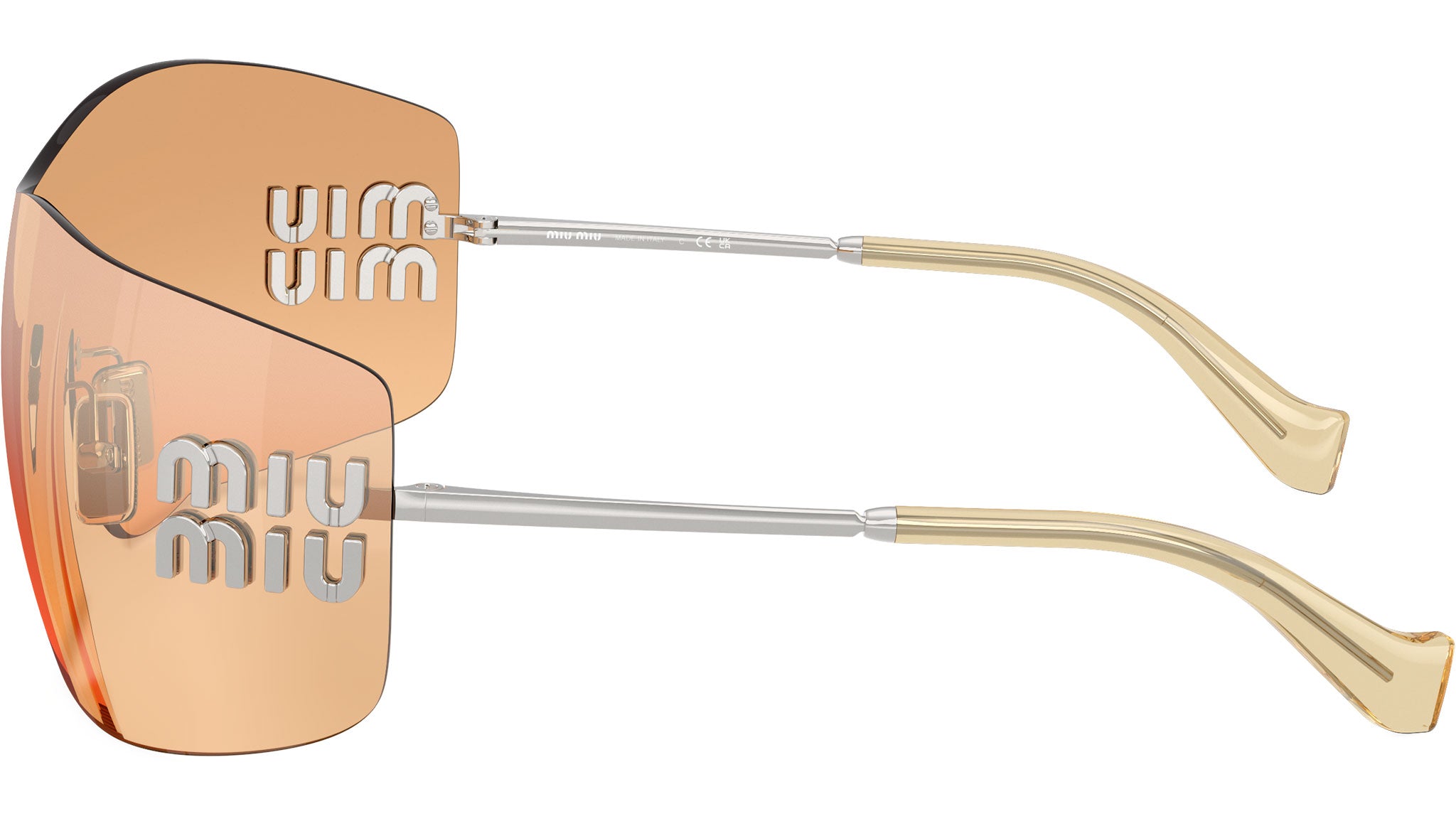Occhiali da sole Miu Miu MU B53S 1BC80Y donna con montatura rettangolare in metallo argento e lenti in poliammide color arancione a specchio argento sfumato. Naselli regolabili. Linea: Main Collection. Codice modello: 0MU B53S. Codice colore: 1BC80Y. Made in Italy. Rivenditore autorizzato Miu Miu online. Gli occhiali vengono consegnati con custodia e accessori originali e sono coperti dalla garanzia ufficiale di 12 mesi del produttore.