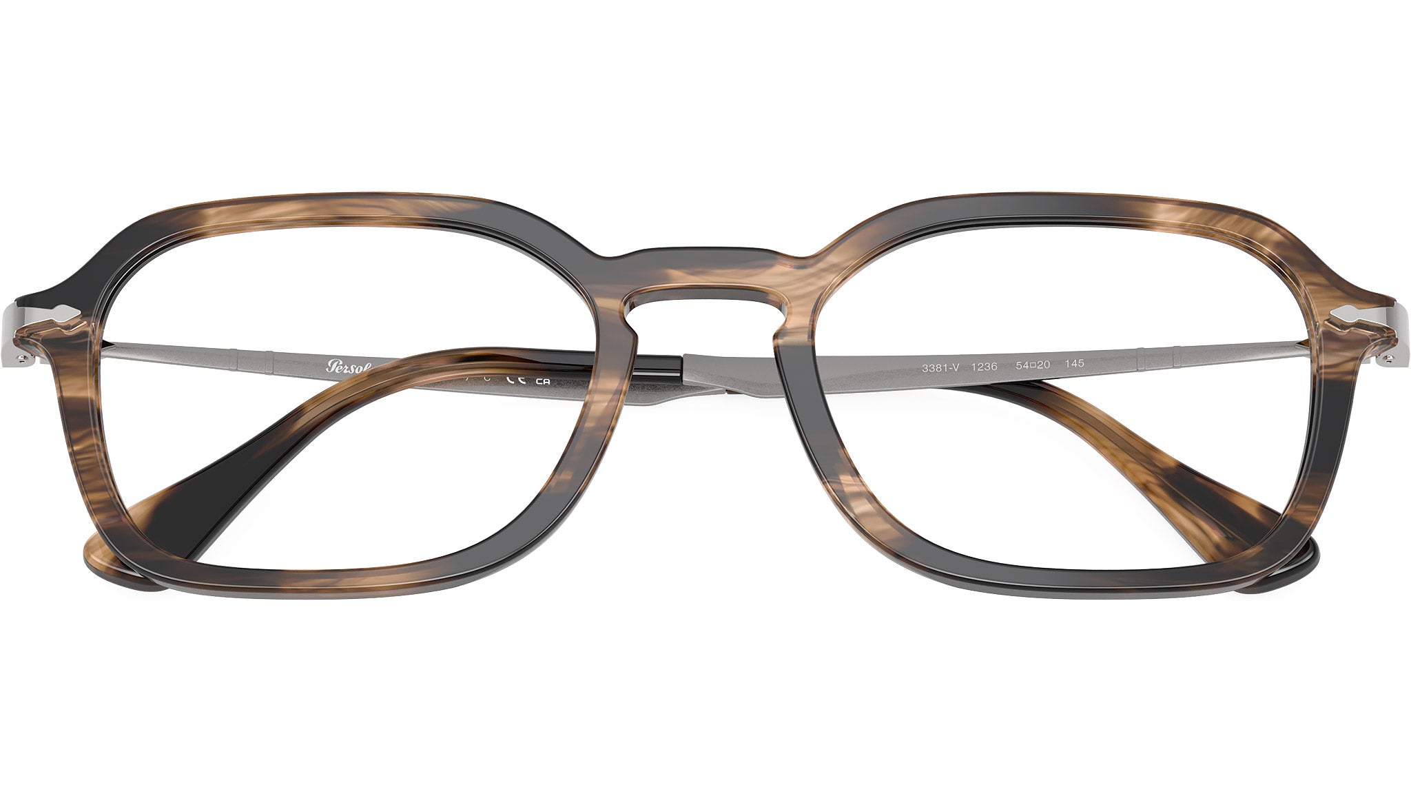 Montatura per occhiali da vista Persol unisex modello PO3381V 1236 con montatura d-frame in acetato nero striato e marrone grigiastro e lenti demo. Linea: Galleria. Codice Brand: 0PO3381V. Codice colore: 1236. Rivenditore autorizzato online Persol Eyewear. Ogni prodotto Persol viene consegnato con astuccio originale e accessori ed è coperto da garanzia del produttore di 12 mesi.