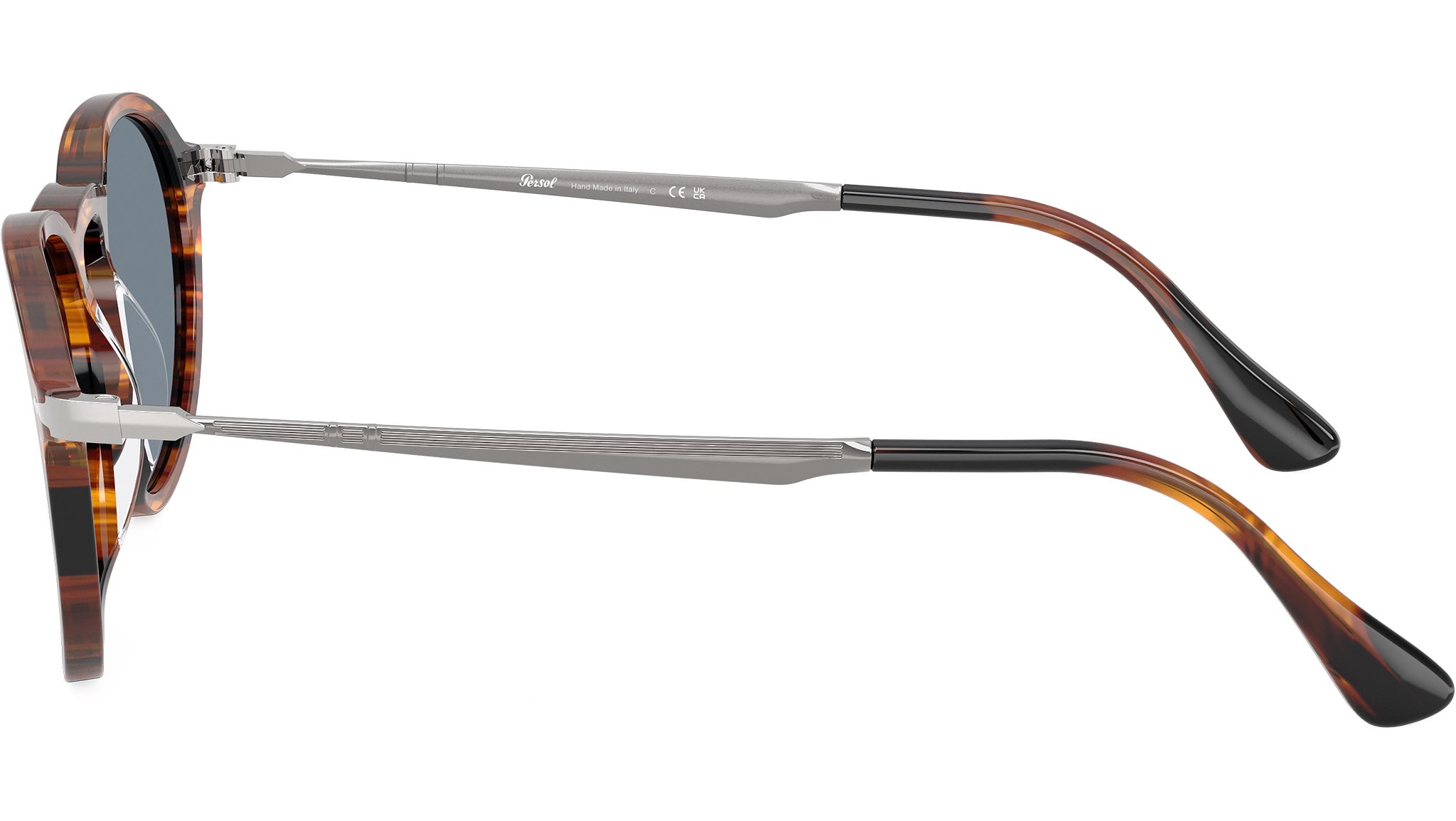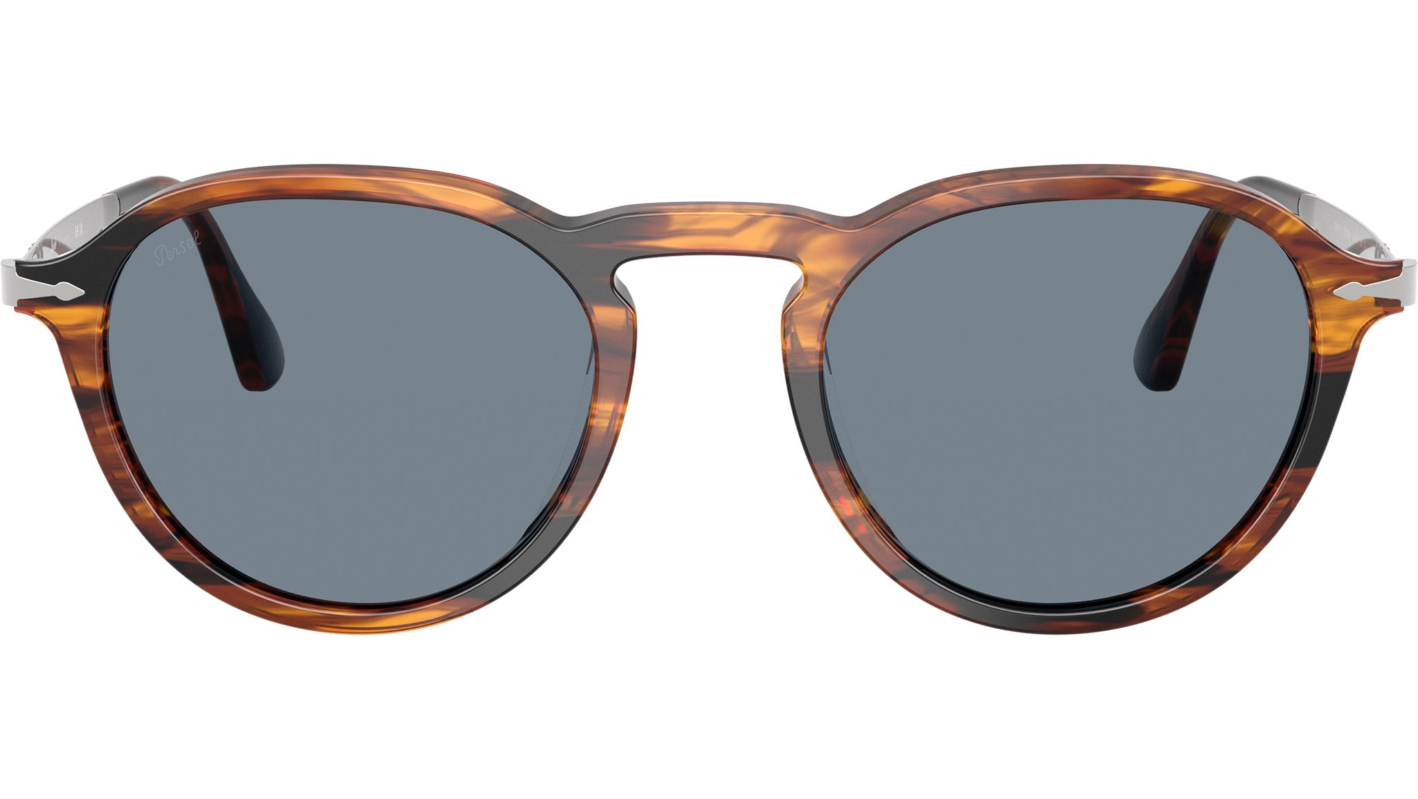 Occhiali da sole Persol unisex modello PO3383S 123556 con montatura panthos in acetato nero striato e marrone e lenti in cristallo azzurro base 4.25. Vestibilità a ponte alto. Linea: Galleria. Codice Brand: 0PO3383S. Codice colore: 123556. Rivenditore autorizzato online Persol Eyewear. Ogni prodotto Persol viene consegnato con astuccio originale e accessori ed è coperto da garanzia del produttore di 12 mesi.