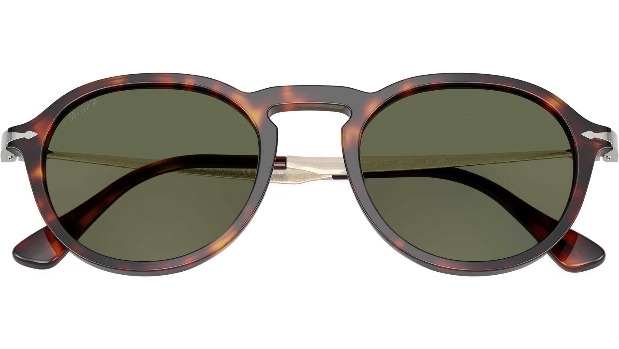 Occhiali da sole Persol unisex modello PO3383S 24/58 con montatura panthos in acetato avana e lenti in cristallo verde polar base 4.25. Vestibilità a ponte alto. Linea: Galleria. Codice Brand: 0PO3383S. Codice colore: 24/58. Rivenditore autorizzato online Persol Eyewear. Ogni prodotto Persol viene consegnato con astuccio originale e accessori ed è coperto da garanzia del produttore di 12 mesi.
