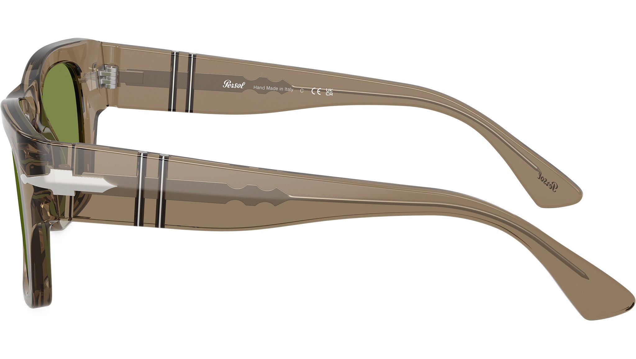 Occhiali da sole Persol unisex modello PO3384S 12284E con montatura squadrata in acetato marrone trasparente e lenti in cristallo verde base 6. Vestibilità a ponte alto. Linea: Officina. Codice Brand: 0PO3384S. Codice colore: 12284E. Rivenditore autorizzato online Persol Eyewear. Ogni prodotto Persol viene consegnato con astuccio originale e accessori ed è coperto da garanzia del produttore di 12 mesi.