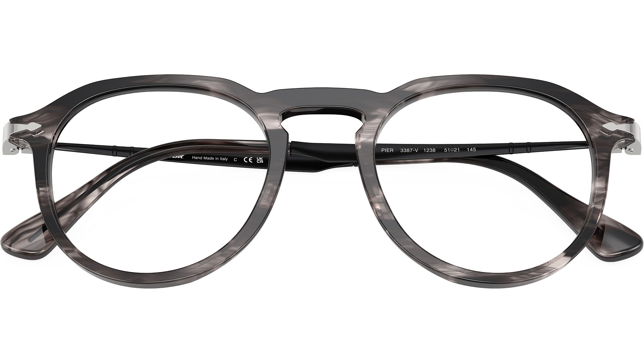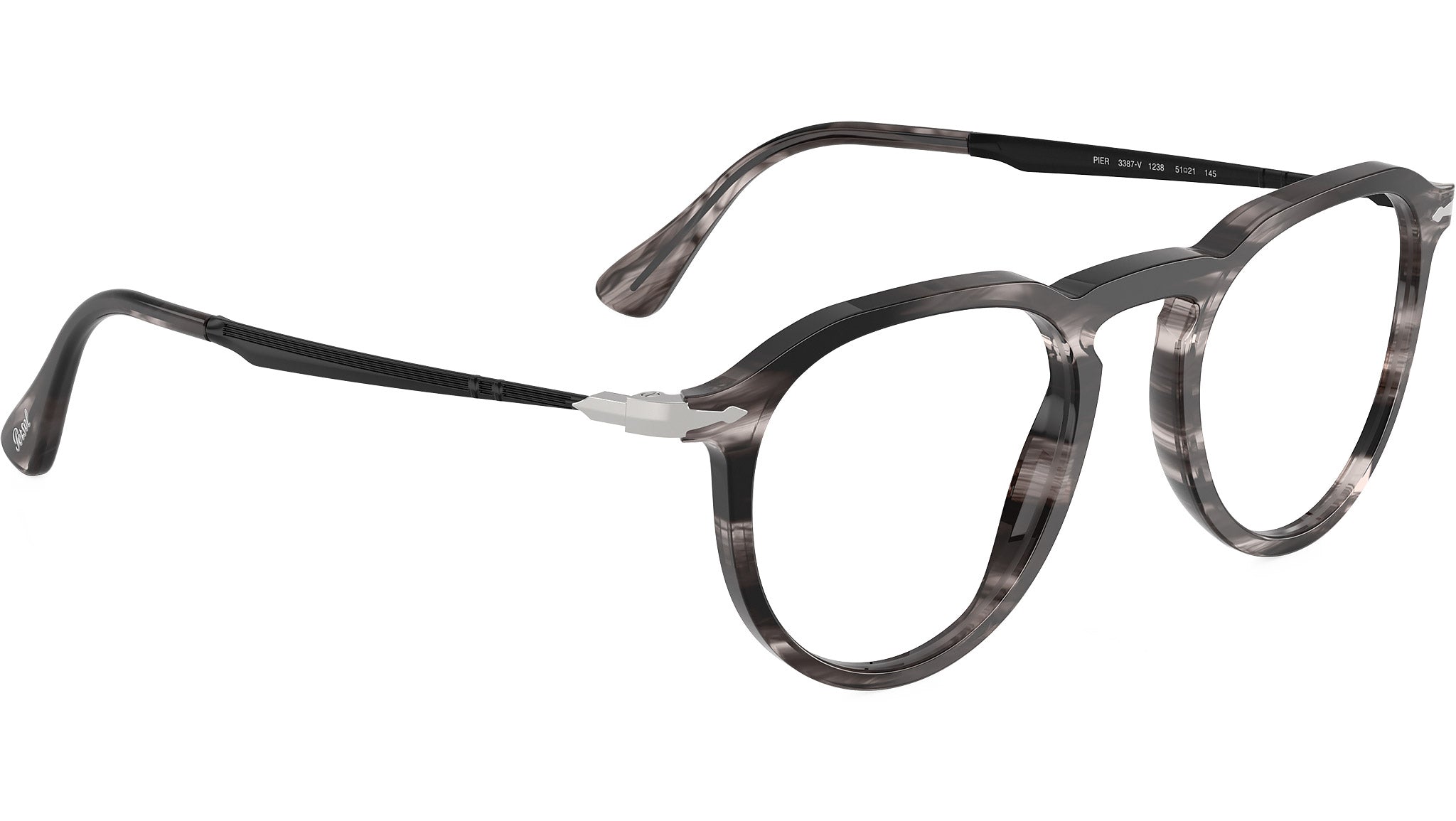 Montatura per occhiali da vista Persol unisex modello PO3387V 1238 con montatura d-frame in acetato nero striato e grigio e lenti demo. Linea: Icona Galleria. Codice Brand: 0PO3387V. Codice colore: 1238. Rivenditore autorizzato online Persol Eyewear. Ogni prodotto Persol viene consegnato con astuccio originale e accessori ed è coperto da garanzia del produttore di 12 mesi.