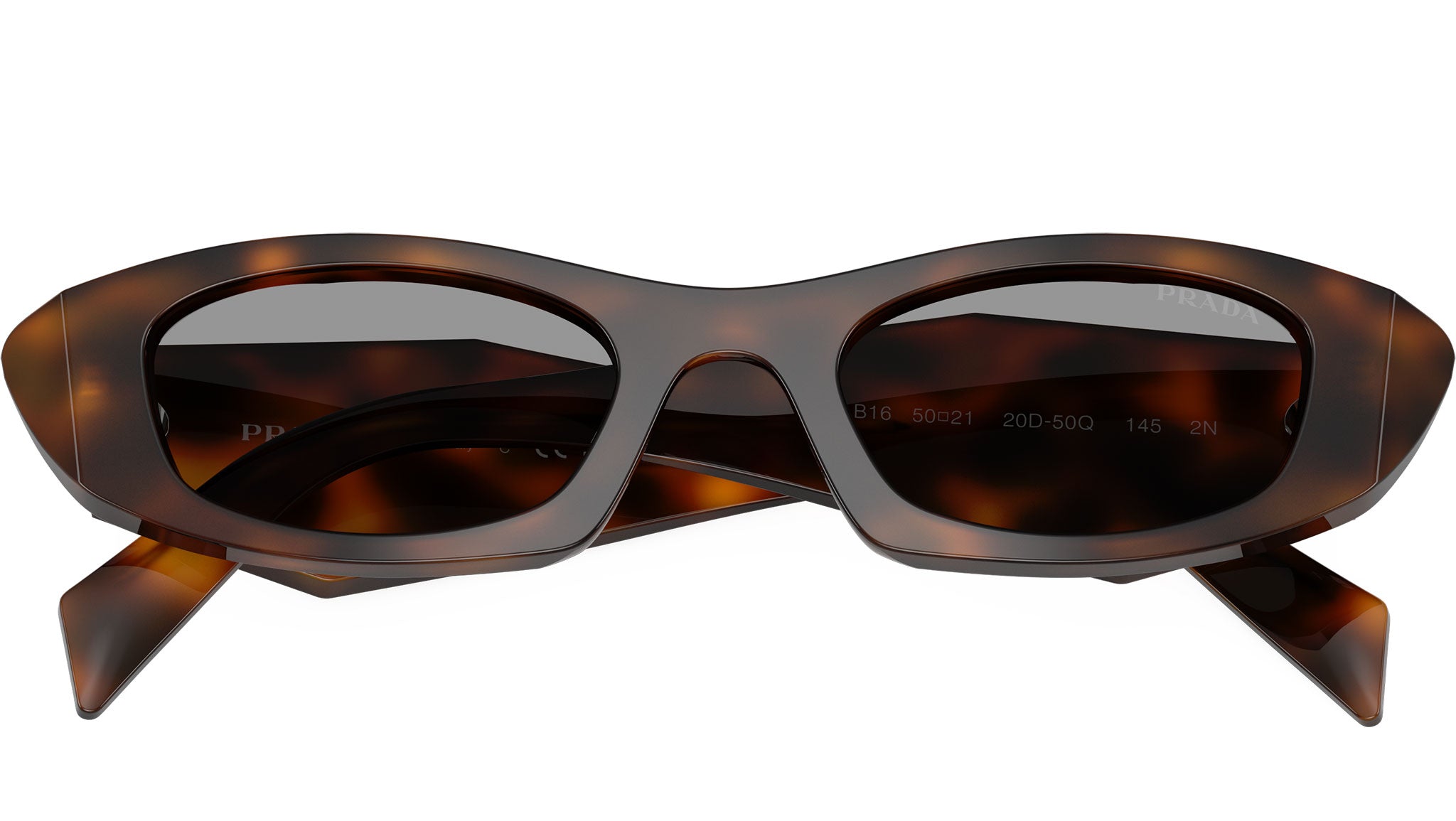 Occhiali da sole Prada PR B16S 20D50Q donna con montatura ovale in acetato tartaruga ginepro e lenti in bio poliammide color grigio. Vestibilità a ponte alto. Linea: Design. Codice modello: PRB16S. Codice colore: 20D50Q. Made in Italy. Rivenditore autorizzato Prada online. Gli occhiali vengono consegnati con custodia e accessori originali e sono coperti dalla garanzia ufficiale di 12 mesi del produttore.