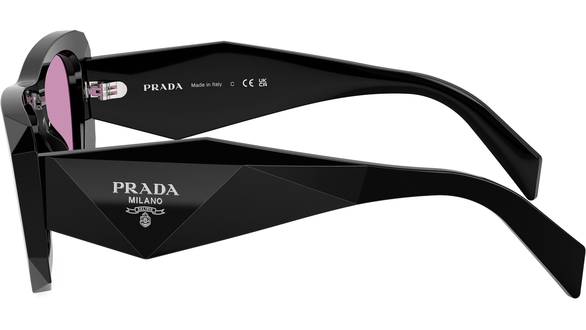 Occhiali da sole Prada PR B18S 16K30G donna con montatura squadrata in acetato nero e lenti in bio poliammide color viola. Vestibilità a ponte alto. Linea: Design. Codice modello: PRB18S. Codice colore: 16K30G. Made in Italy. Rivenditore autorizzato Prada online. Gli occhiali vengono consegnati con custodia e accessori originali e sono coperti dalla garanzia ufficiale di 12 mesi del produttore.