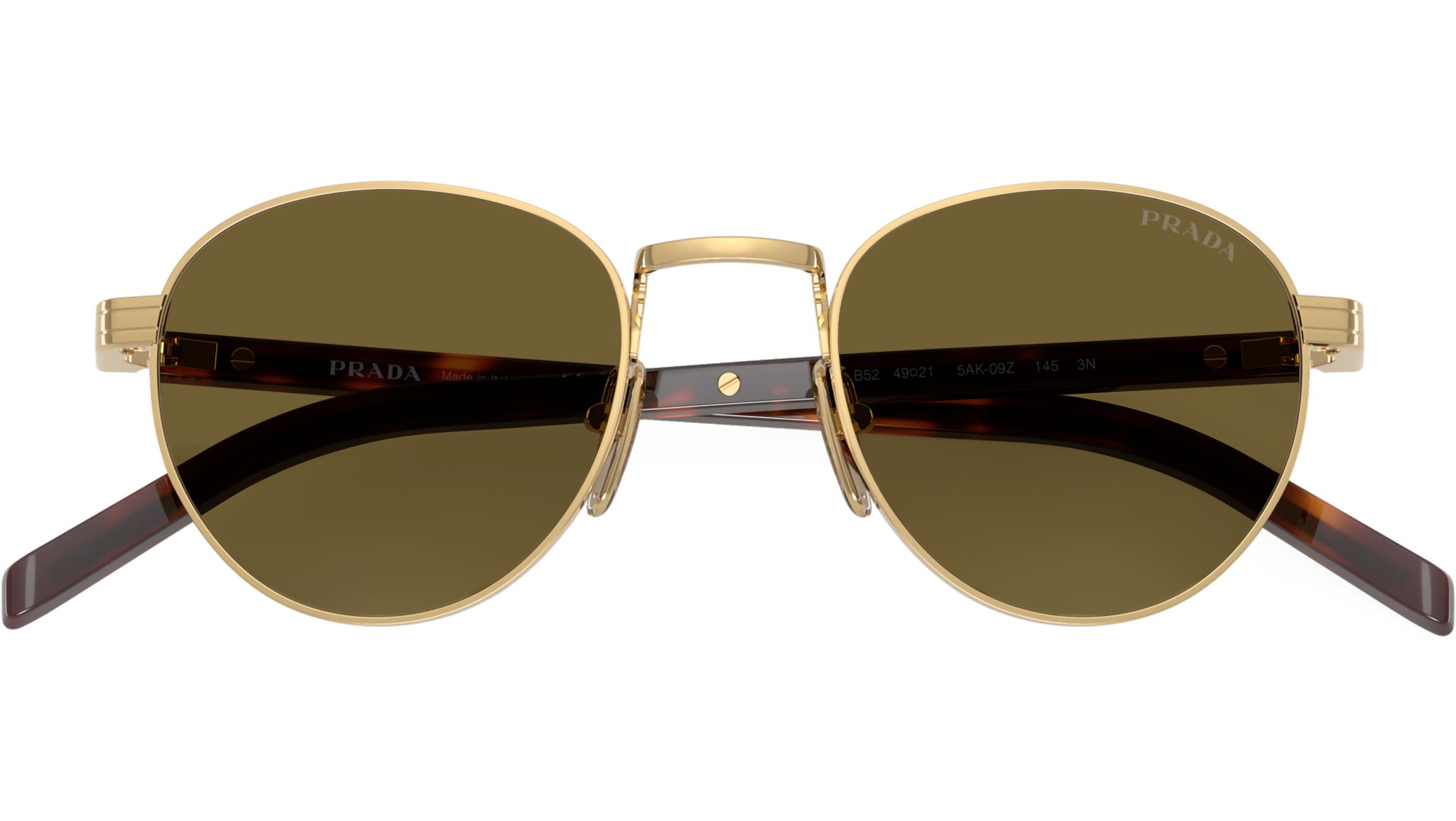 Occhiali da sole Prada PR B52S 5AK09Z donna con montatura pantos in acciaio oro e lenti in bio poliammide color marrone scuro. Naselli regolabili. Linea: Signature. Codice modello: PRB52S. Codice colore: 5AK09Z. Made in Italy. Rivenditore autorizzato Prada online. Gli occhiali vengono consegnati con custodia e accessori originali e sono coperti dalla garanzia ufficiale di 12 mesi del produttore.