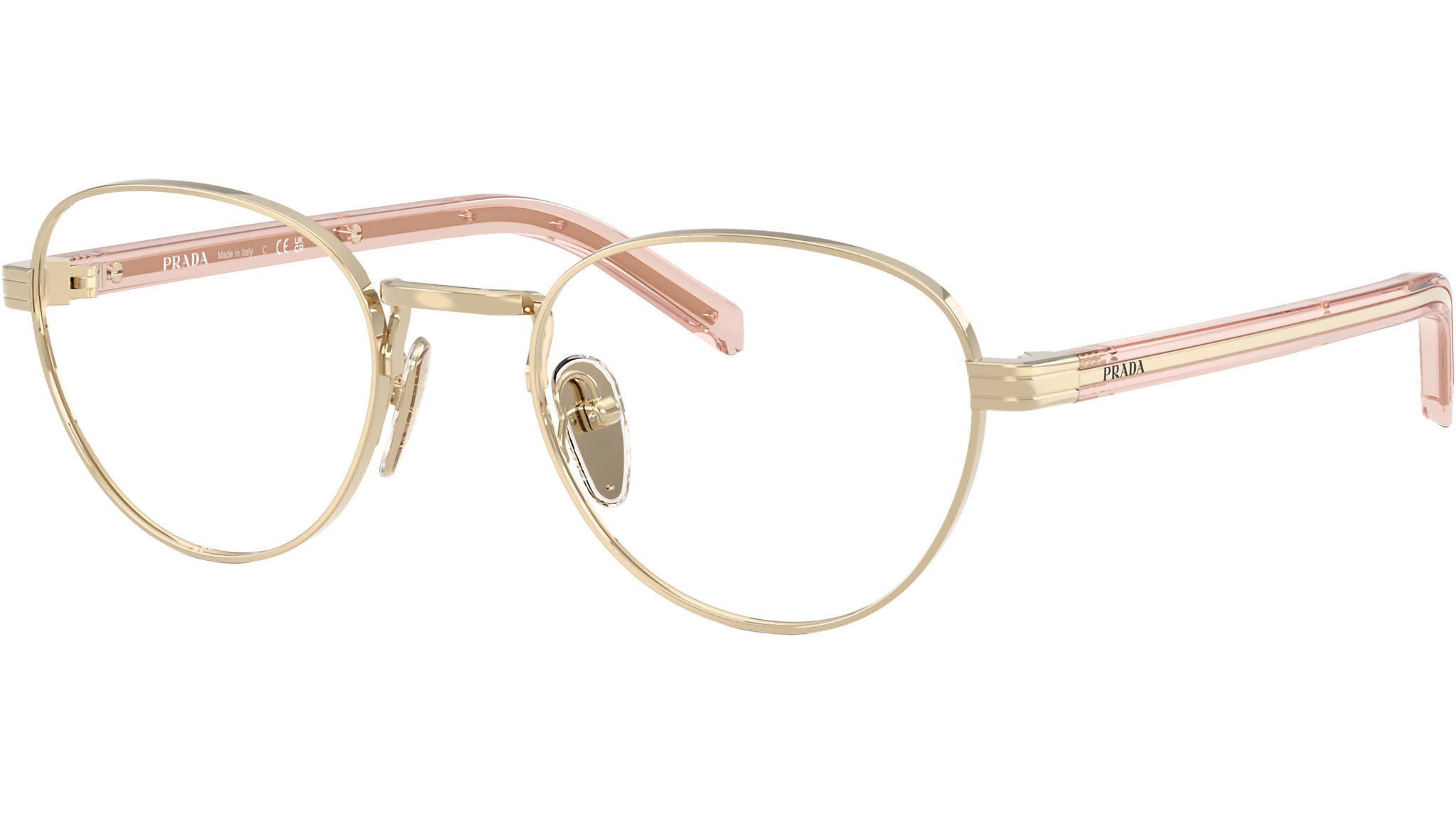 Occhiali da vista Prada PR B53V ACX1O1 donna con montatura rotonda in acciaio oro pallido e lenti demo. Naselli regolabili. Linea: Signature. Codice modello: PRB53V. Codice colore: ACX1O1. Made in Italy. Rivenditore autorizzato Prada online. Gli occhiali vengono consegnati con custodia e accessori originali e sono coperti dalla garanzia ufficiale di 12 mesi del produttore.