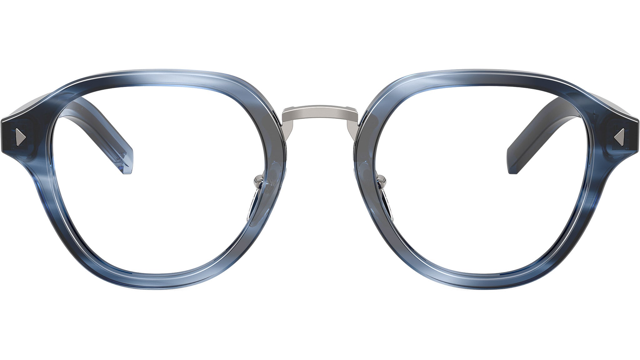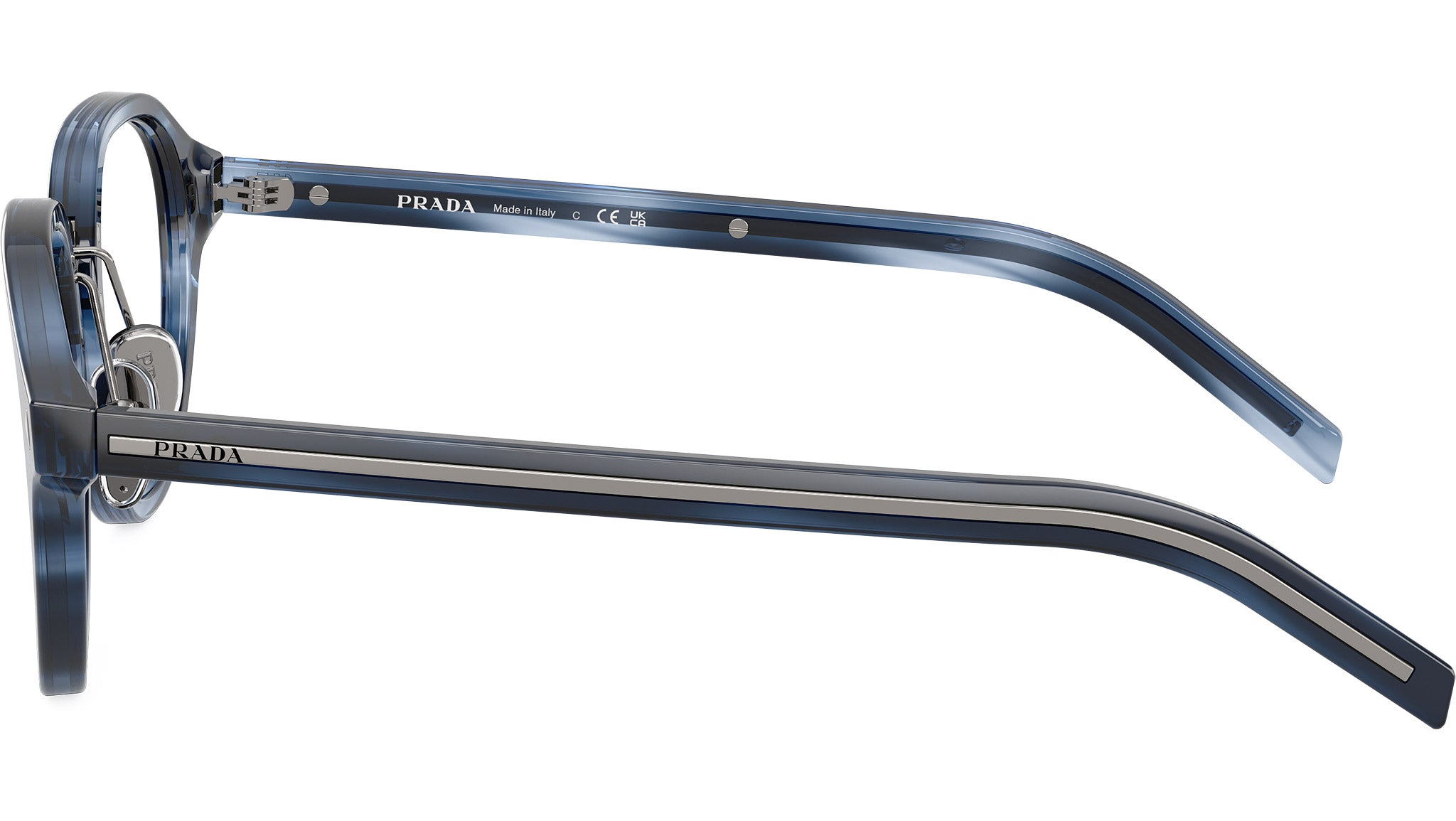 Occhiali da vista Prada PR C05V 26F1O1 uomo con montatura pantos in acetato blu striato e lenti demo. Naselli regolabili. Linea: Heritage. Codice modello: PRC05V. Codice colore: 26F1O1. Made in Italy. Rivenditore autorizzato Prada online. Gli occhiali vengono consegnati con custodia e accessori originali e sono coperti dalla garanzia ufficiale di 12 mesi del produttore.