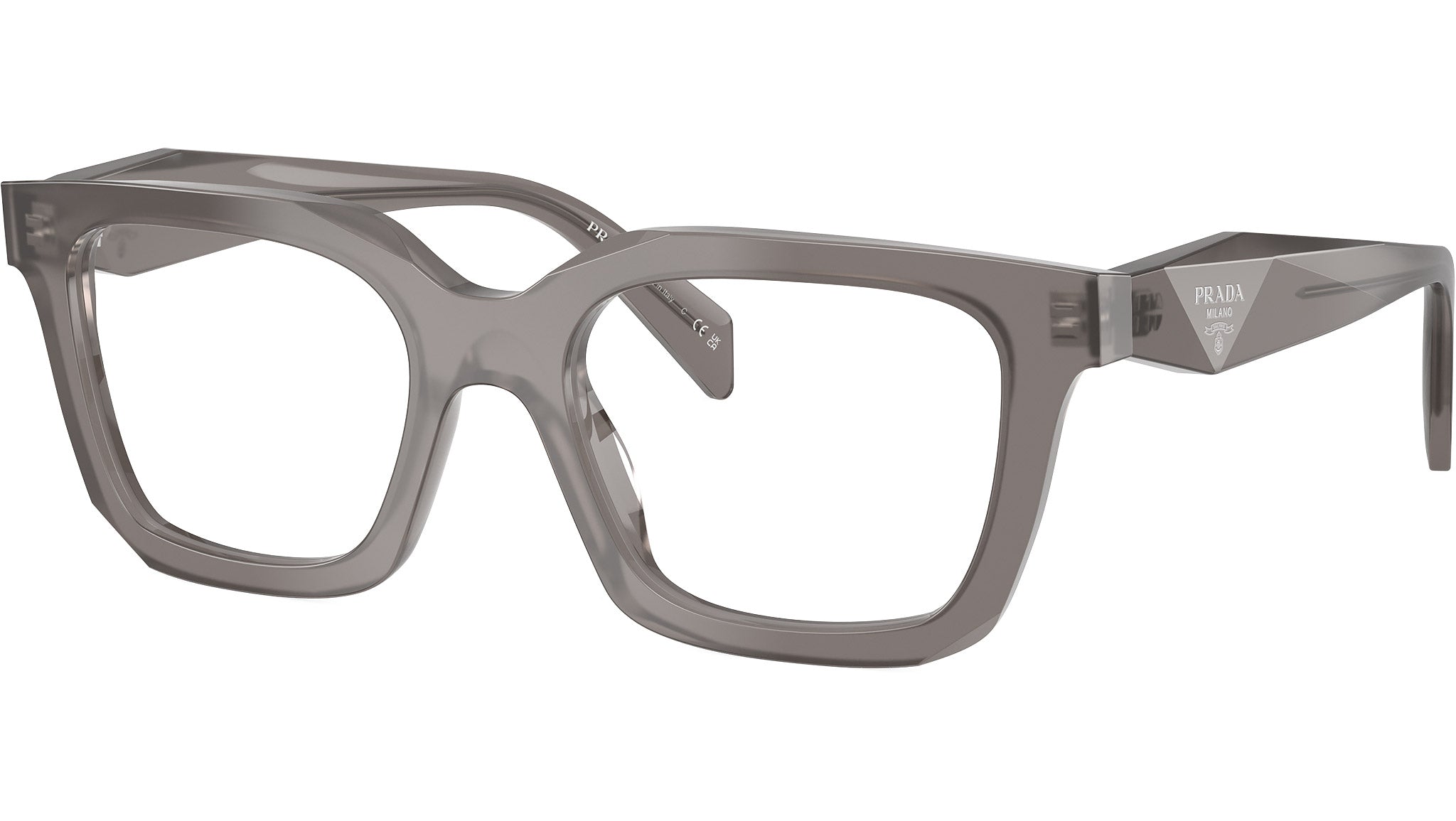 Occhiali da vista Prada PR C08V 27G1O1 donna con montatura geometrica in acetato grigio freddo trasparente e lenti demo. Vestibilità a ponte alto. Linea: Design. Codice modello: PRC08V. Codice colore: 27G1O1. Made in Italy. Rivenditore autorizzato Prada online. Gli occhiali vengono consegnati con custodia e accessori originali e sono coperti dalla garanzia ufficiale di 12 mesi del produttore.