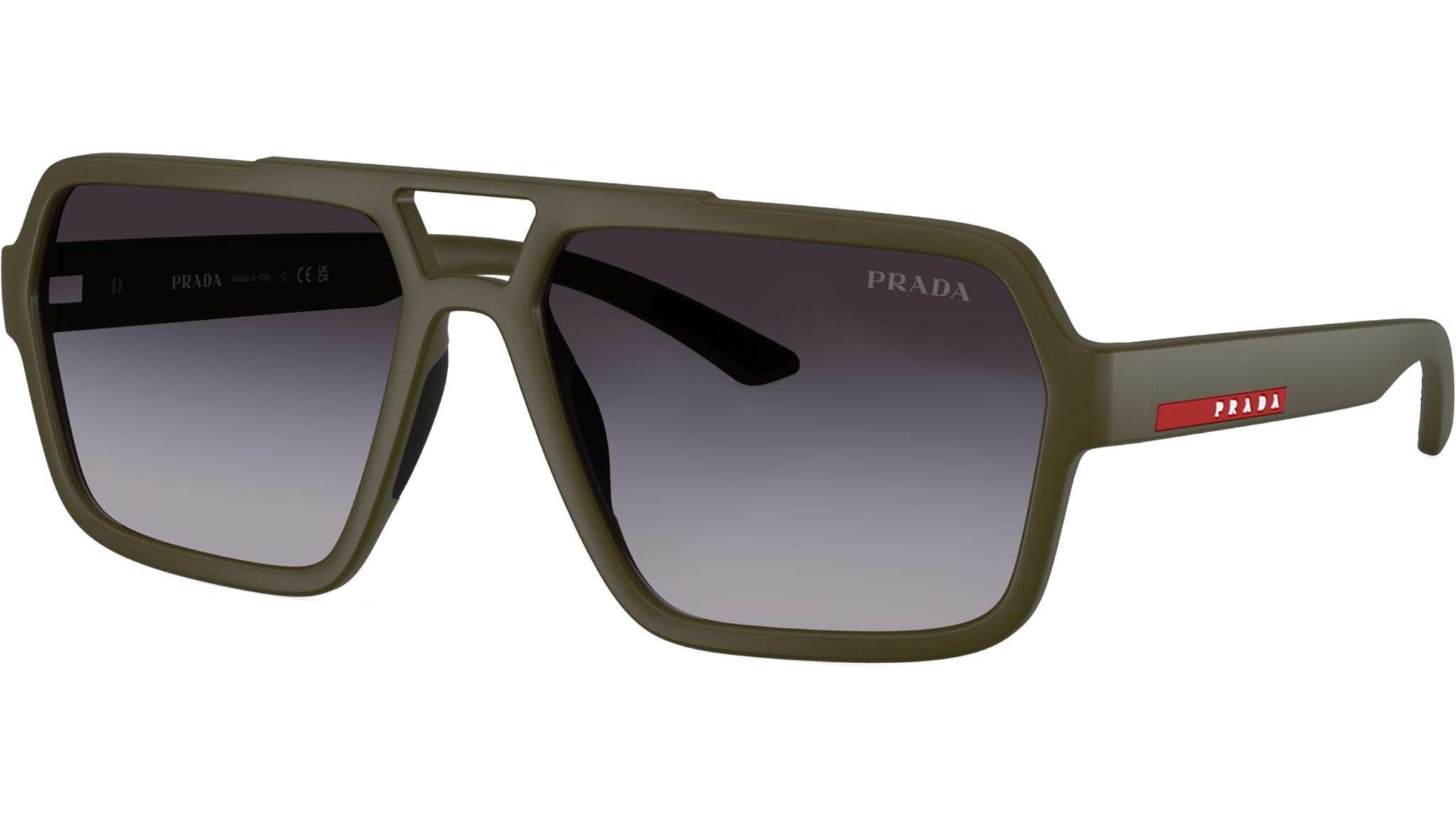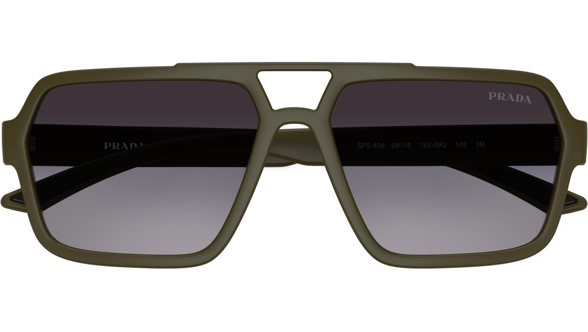 Occhiali da sole Prada Linea Rossa PS A06S 15X09U uomo con montatura aviatore in iniettato verde opaco e lenti in poliammide color grigio sfumato. Fit universale. Linea: Lifestyle. Codice modello: PSA06S. Codice colore: 15X09U. Made in Italy. Rivenditore autorizzato Prada Sport online. Gli occhiali vengono consegnati con custodia e accessori originali e sono coperti dalla garanzia ufficiale di 12 mesi del produttore.
