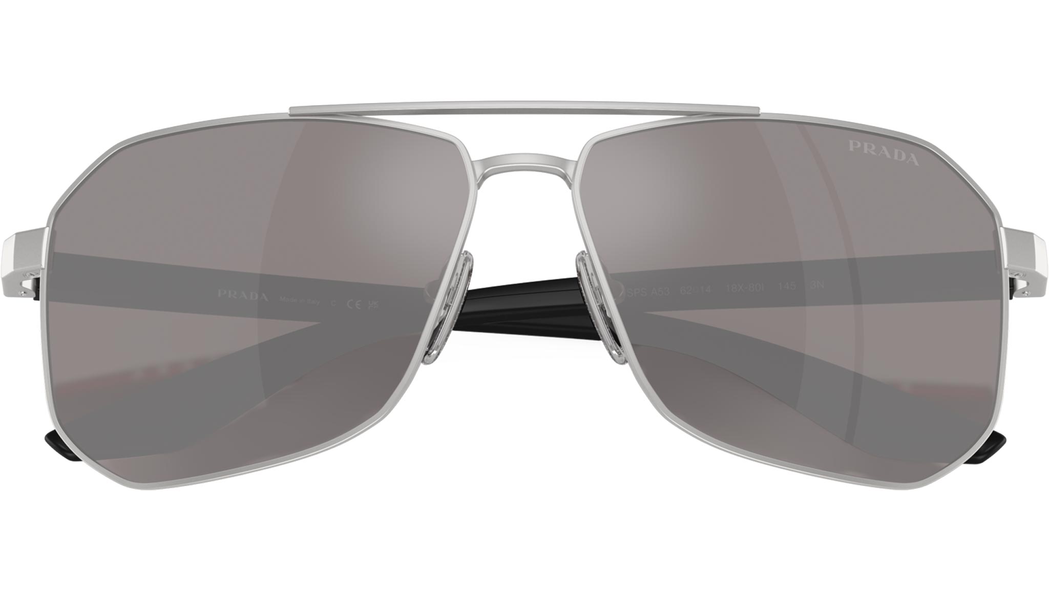 Occhiali da sole Prada Linea Rossa PS A53S 18X80I uomo con montatura aviatore in metallo champagne opaco e lenti in poliammide color marrone porpora a specchio argento. Vestibilità a ponte alto. Linea: Lifestyle. Codice modello: PSA53S. Codice colore: 18X80I. Made in Italy. Rivenditore autorizzato Prada Sport online. Gli occhiali vengono consegnati con custodia e accessori originali e sono coperti dalla garanzia ufficiale di 12 mesi del produttore.