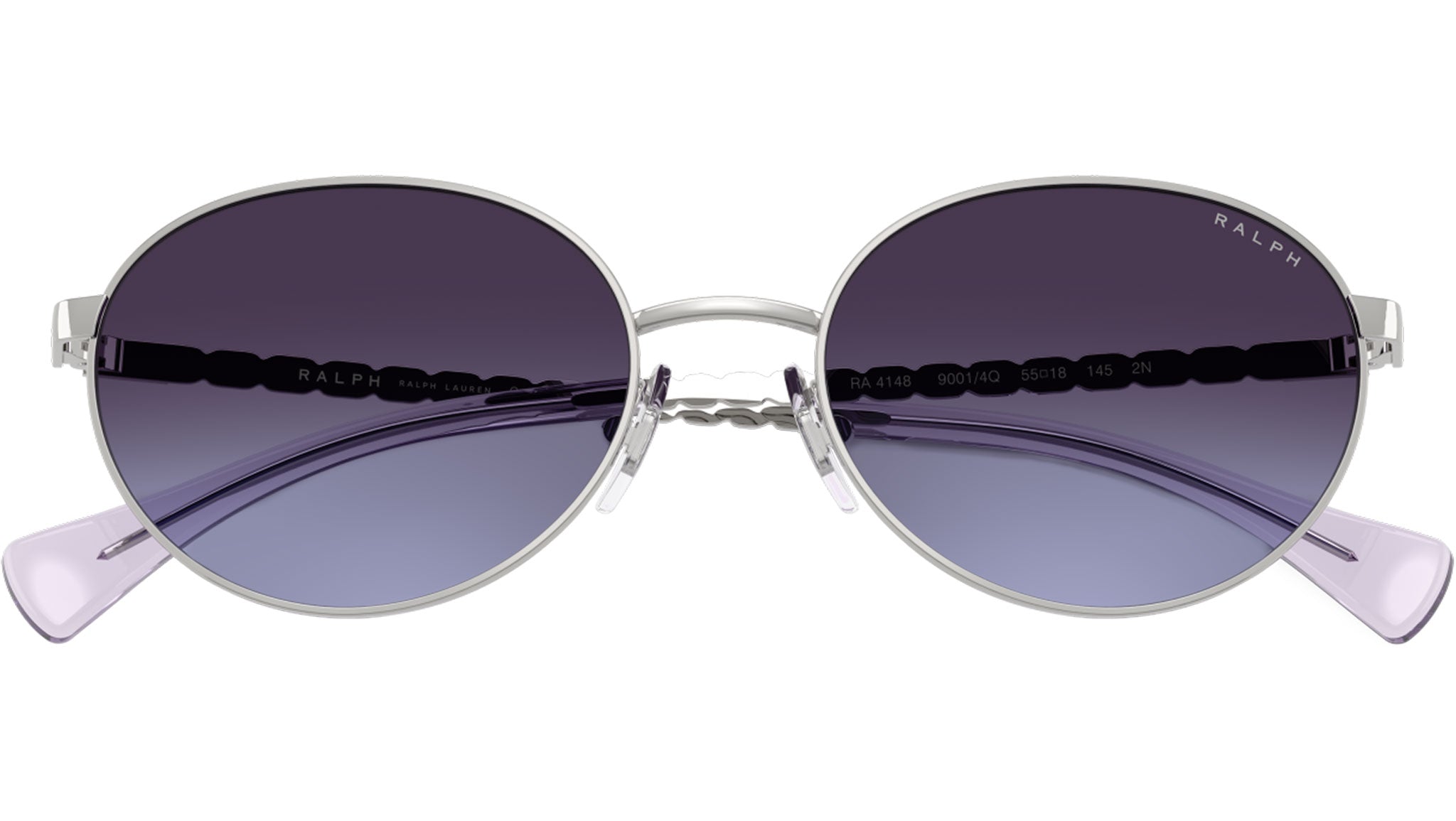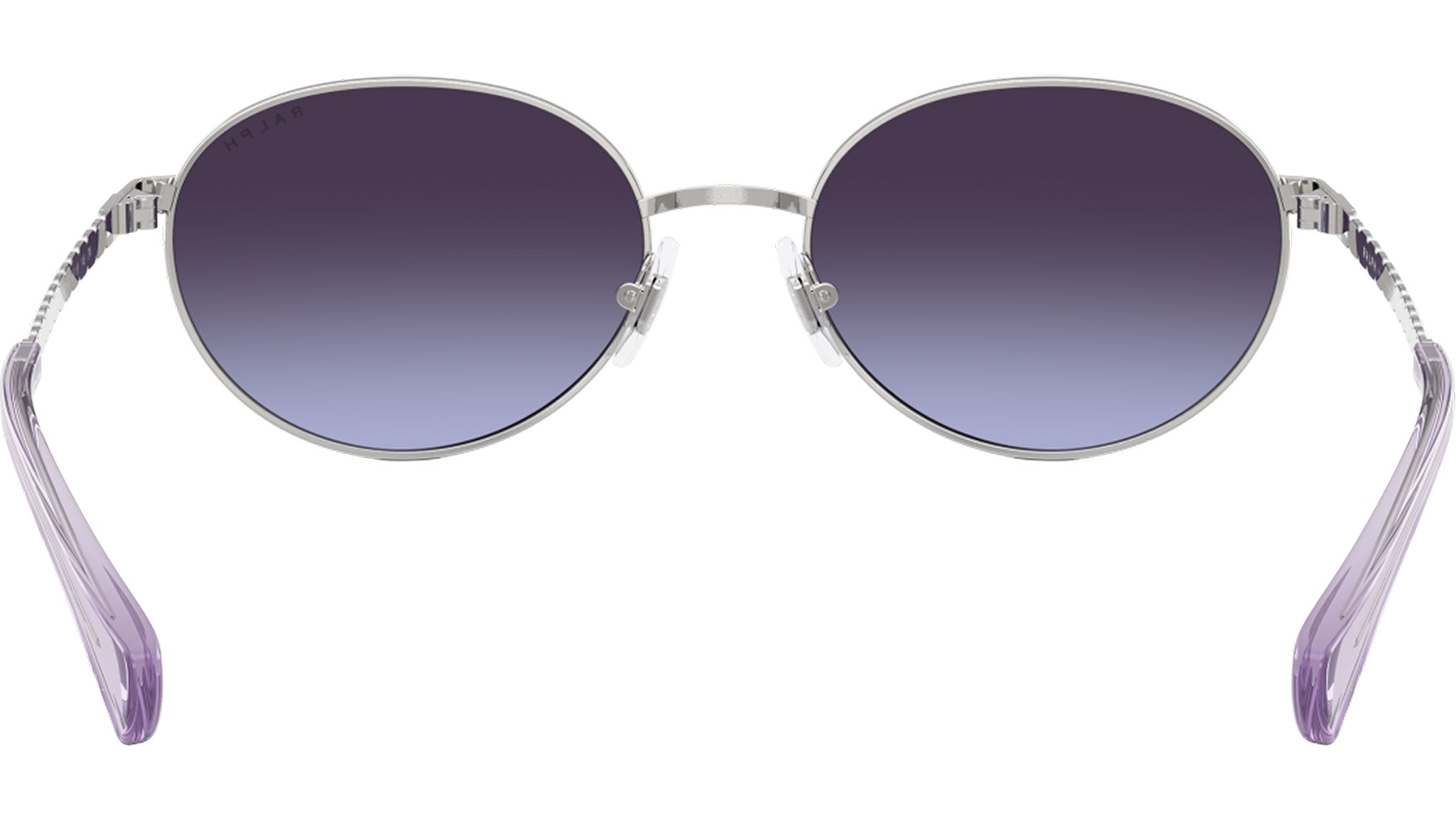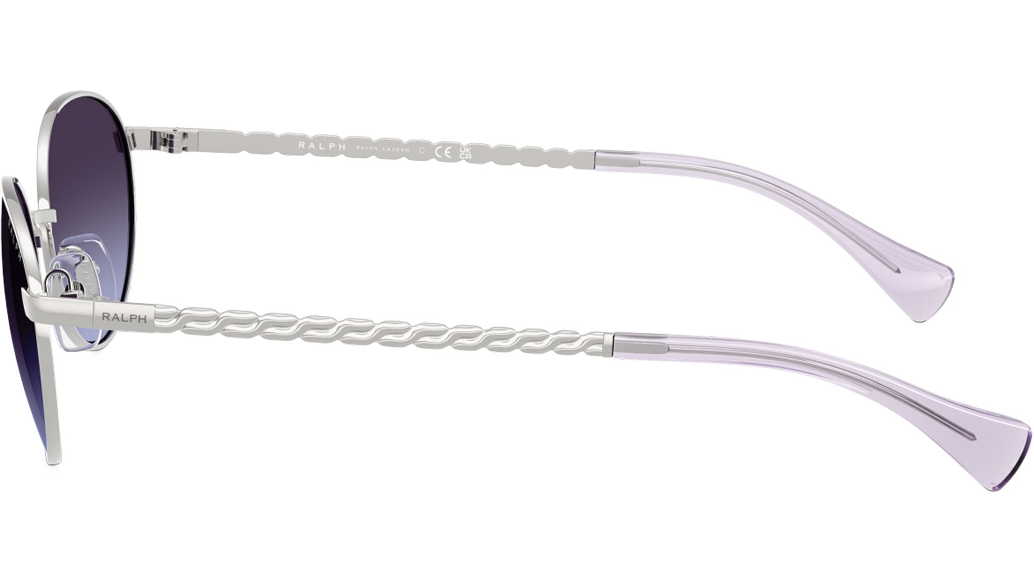 Occhiali da sole Ralph RA4148 90014Q con montatura ovale in metallo argento lucido e lenti in policarbonato color blu azzurro sfumato. Naselli regolabili. Linea: Glamour. Codice modello: 0RA4148. Codice colore: 90014Q. Rivenditore autorizzato Ralph online. Gli occhiali vengono consegnati con custodia e accessori originali e sono coperti dalla garanzia ufficiale di 12 mesi del produttore.