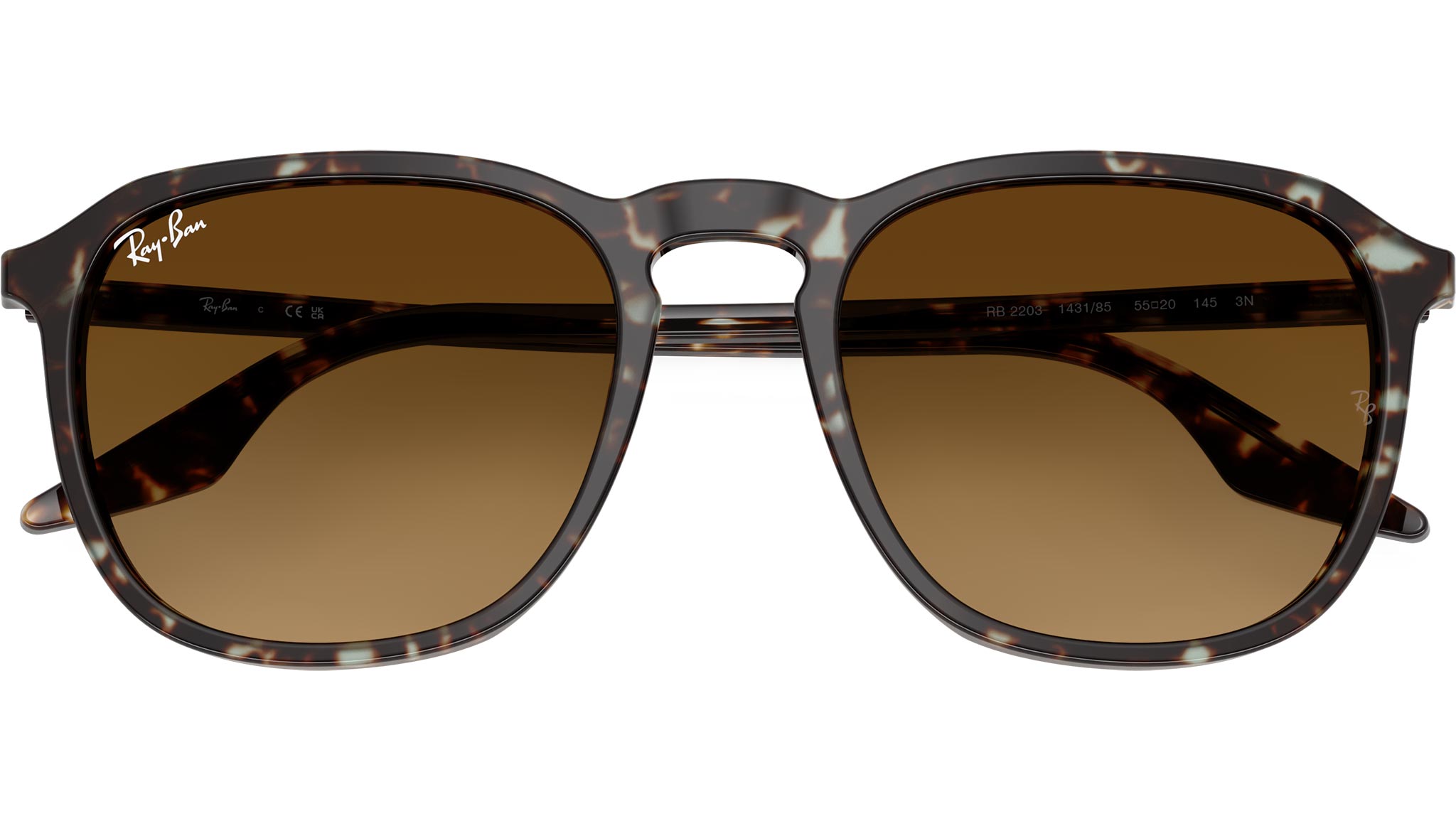 Occhiali da sole Ray-Ban RB2203 RB2203 143185 unisex con montatura squadrata in acetato avana giallo tartarugato e lenti in cristallo color marrone sfumato. Vestibilità a ponte alto. Linea: Core. Codice modello: 0RB2203. Codice colore: 143185. Rivenditore autorizzato Ray-Ban online. Gli occhiali vengono consegnati con custodia e accessori originali e sono coperti dalla garanzia ufficiale di 12 mesi del produttore.