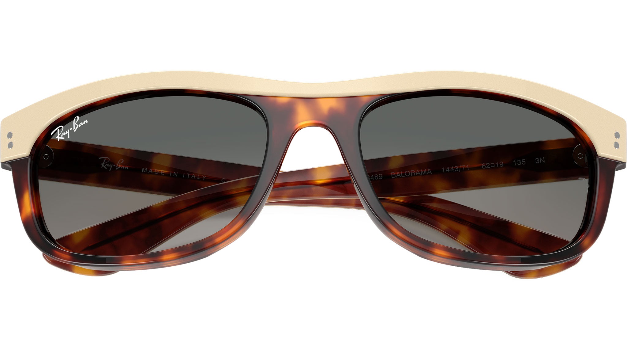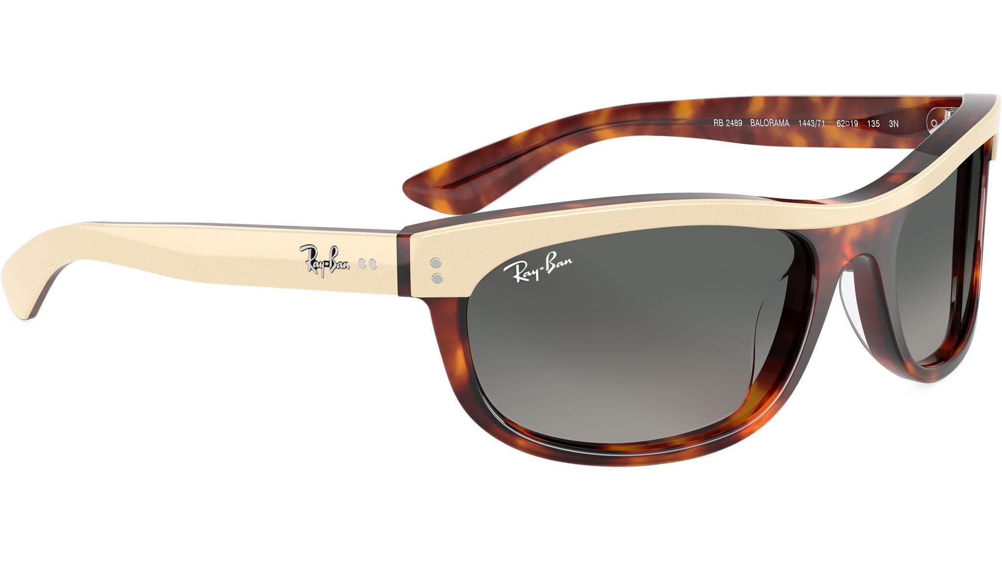 Occhiali da sole Ray-Ban Balorama RB2489 144371 unisex con montatura rettangolare in acetato beige avana e lenti in cristallo color grigio sfumato. Vestibilità a ponte alto. Linea: Evolution. Codice modello: 0RB2489. Codice colore: 144371. Rivenditore autorizzato Ray-Ban online. Gli occhiali vengono consegnati con custodia e accessori originali e sono coperti dalla garanzia ufficiale di 12 mesi del produttore.