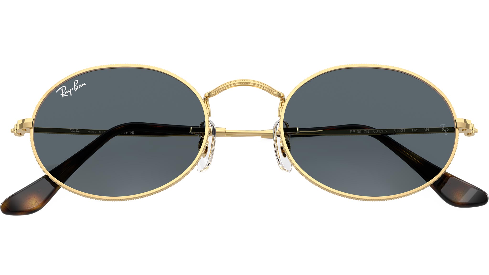 Occhiali da sole Ray-Ban Oval Flat Lenses RB3547N 001/R5 unisex con montatura ovale in metallo arista oro e lenti in cristallo color blu. Naselli regolabili. Linea: Evolution. Codice modello: 0RB3547N. Codice colore: 001/R5. Rivenditore autorizzato Ray-Ban online. Gli occhiali vengono consegnati con custodia e accessori originali e sono coperti dalla garanzia ufficiale di 12 mesi del produttore.