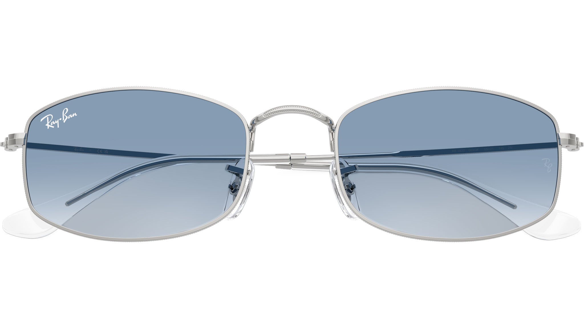 Occhiali da sole Ray-Ban RB3832 003/3F unisex con montatura geometrica in metallo argento e lenti in cristallo color blu chiaro sfumato. Naselli regolabili. Linea: Evolution. Codice modello: 0RB3832. Codice colore: 003/3F. Rivenditore autorizzato Ray-Ban online. Gli occhiali vengono consegnati con custodia e accessori originali e sono coperti dalla garanzia ufficiale di 12 mesi del produttore.