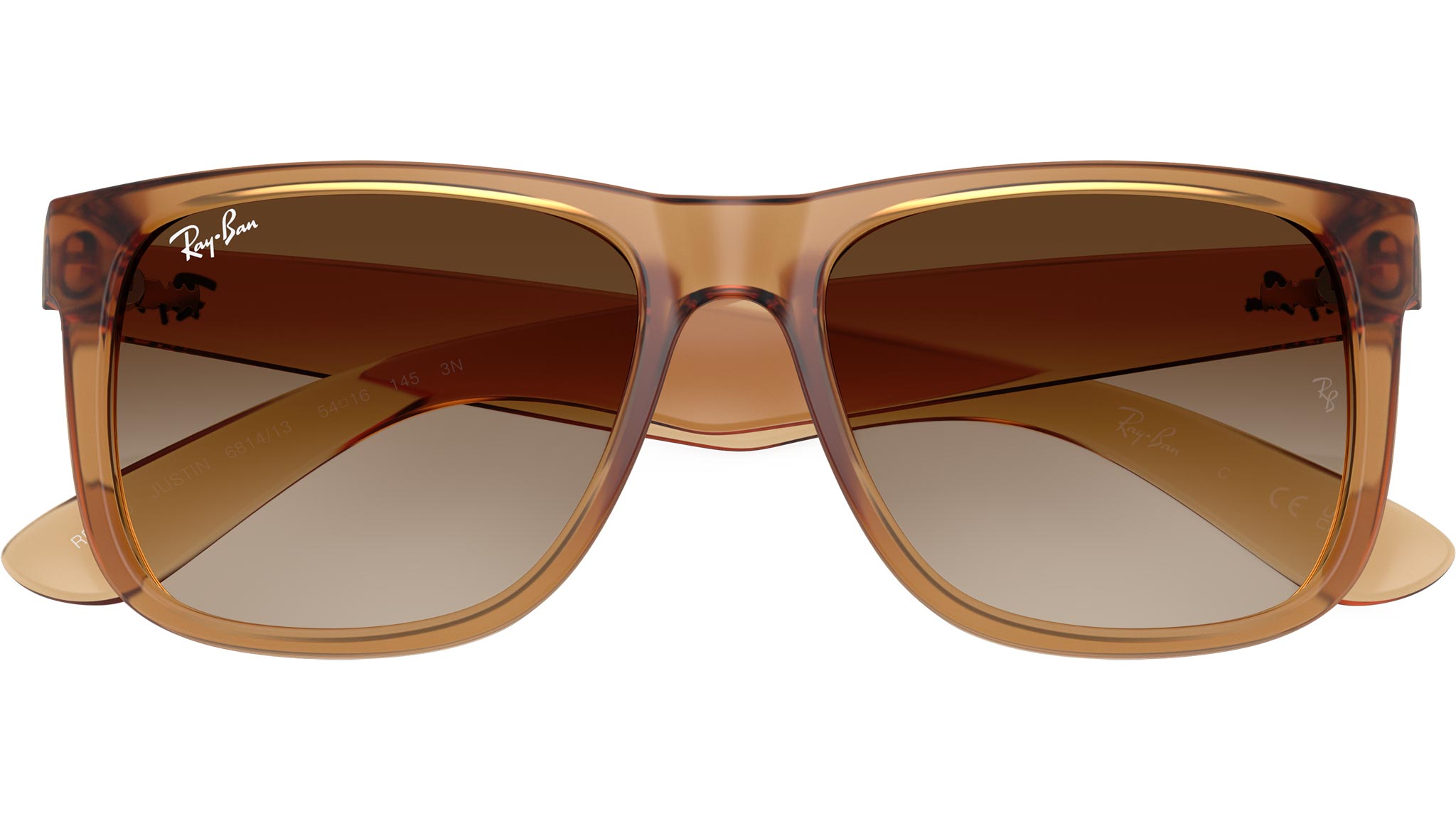 Occhiali da sole Ray-Ban Justin RB4165 681413 uomo con montatura squadrata in nylon beige gommato e lenti in policarbonato color marrone sfumato. Vestibilità a ponte alto. Linea: Essentials. Codice modello: 0RB4165. Codice colore: 681413. Rivenditore autorizzato Ray-Ban online. Gli occhiali vengono consegnati con custodia e accessori originali e sono coperti dalla garanzia ufficiale di 12 mesi del produttore.