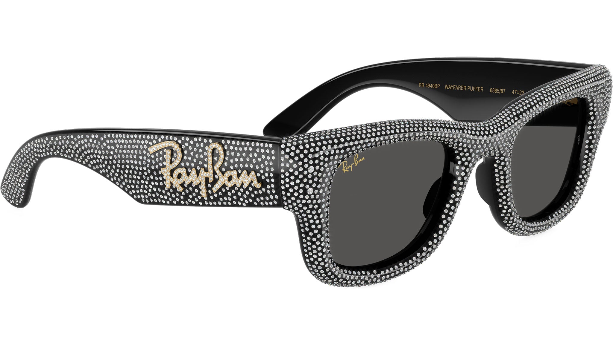 Occhiali da sole Ray-Ban Wayfarer Puffer RB4940BP 686587 unisex con montatura squadrata in nylon nero & strass pave e lenti in bio poliammide color grigio scuro. Vestibilità a ponte alto. Linea: Evolution. Codice modello: 0RB4940BP. Codice colore: 686587. Rivenditore autorizzato Ray-Ban online. Gli occhiali vengono consegnati con custodia e accessori originali e sono coperti dalla garanzia ufficiale di 12 mesi del produttore.