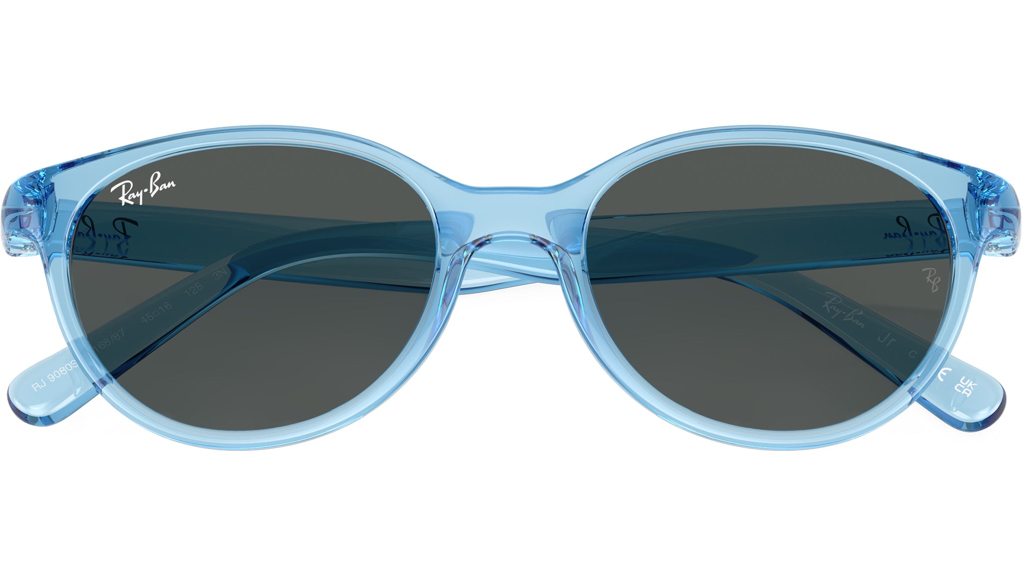 Occhiali da sole Ray-Ban Junior RJ9080S 716887 unisex con montatura squadrata in iniettato blu trasparente e lenti in bio poliammide color grigio scuro. Vestibilità a ponte alto. Linea: Kids Innovation. Codice modello: 0RJ9080S. Codice colore: 716887. Rivenditore autorizzato Ray-Ban online. Gli occhiali vengono consegnati con custodia e accessori originali e sono coperti dalla garanzia ufficiale di 12 mesi del produttore.