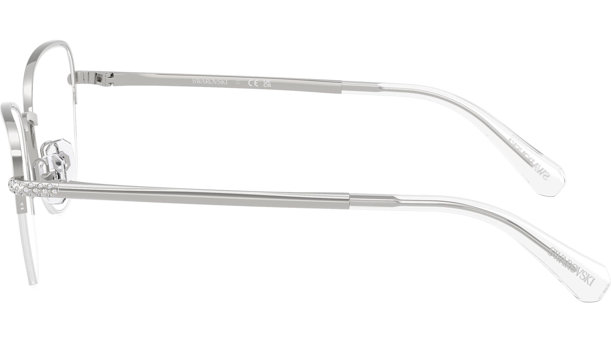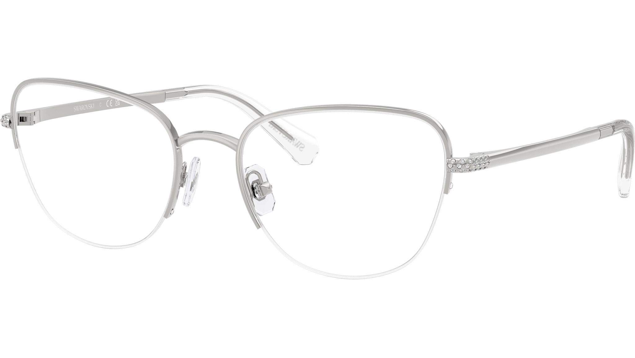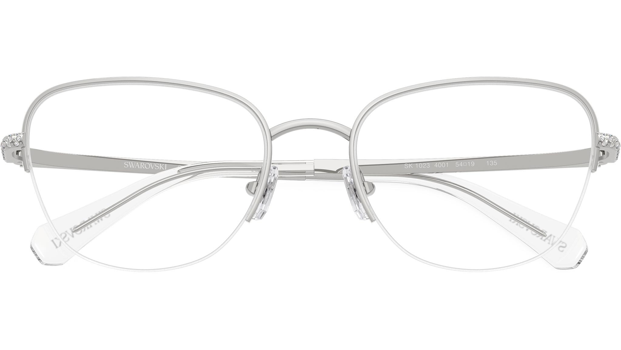 Occhiali da vista Swarovski SK1023 4001 donna, con montatura cat eye in metallo color argento e lenti demo. Naselli regolabili. Linea: Science of Facets. Codice modello: SK1023. Codice colore: 4001. Rivenditore autorizzato Swarovski Eyewear online. Ogni prodotto Swarovski viene consegnato con astuccio originale e accessori ed è coperto da garanzia del produttore di 12 mesi.