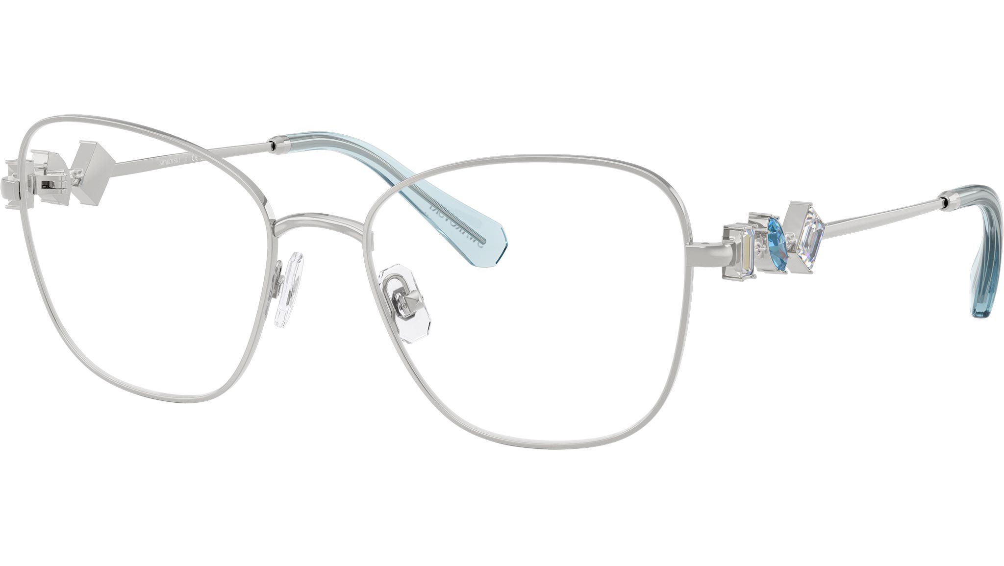 Occhiali da vista Swarovski SK1025 401A donna, con montatura geometrica in metallo color argento e lenti demo. Naselli regolabili. Linea: Science of Facets. Codice modello: SK1025. Codice colore: 401A. Rivenditore autorizzato Swarovski Eyewear online. Ogni prodotto Swarovski viene consegnato con astuccio originale e accessori ed è coperto da garanzia del produttore di 12 mesi.